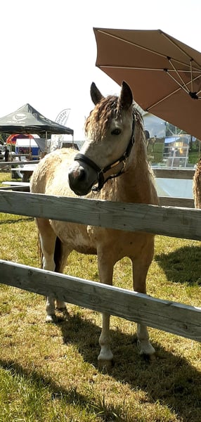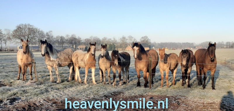 Heavenlysmiles Boomerang ❤ Are you looking for the sweetest, most adorable, affectionate, handsome (rock-solid) and beautiful hypoallergenic Curly Pony? Then you’ve found him! Boomerang is two and a half years old and has already proven that he not only has a golden color but also a golden temperament. What an incredibly sweet animal! Born in our garden, he spent his first six months outdoors, daily in our hands and those of five young children. Playing with the dog and his favorite activity was tugging on laundry – or rather, pulling it off the line and then running away with it. Now, Boomerang is grazing in a mixed herd on the large pasture. He is very grounded, neither bossy nor submissive. The perfect gelding for any herd! Boomerang is now two and a half years old and already castrated. He will grow to about 14.1–14.2 hh and is nicely stocky. On June 20th, 21st, and 22nd, Boomerang traveled with Sky to the Farm and Country Fair in Aalten. Thousands of visitors attended, and he enjoyed every day of all the attention. He kept coming back to everyone for cuddles! The unusual attractions like music, flags, umbrellas, tractor parades – too many to mention – he loved it all! The demonstration in the main ring promoting the Curly breed and the big applause were no problem for the boys! For the festival and overnight stays, he was loaded onto the trailer several times a day. The children handle this effortlessly with him. Boomerang carries the KRT25 Curly gene. He is a son of Tall Trees White Gold and a grandson of EB The Pirate. Heavenlysmiles Boomerang – a top horse for life! A great ride for small children or petite adults, or a stunning Curly Horse for carriage driving! Our price is exclusive of VAT, inspection, and transport costs. For questions, more information, or plenty of photos and videos, visit our Facebook page: Heavenlysmile Cob's and Curly Horse. Our website: heavenlysmile.nl Or send us a WhatsApp! 0031 61767 2265
