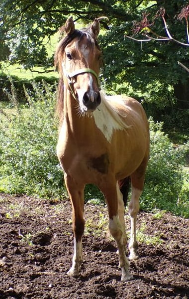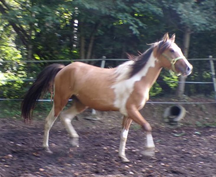 Nuestro chico es hijo de una yegua Curly Foxtrotter y un semental Paint, y debería alcanzar una altura final de 1,48 - 1,50 m. Es un compañero amigable, curioso y muy sociable, y ahora está en la edad ideal para comenzar su entrenamiento. Ha crecido en un grupo en un establo abierto y actualmente está en un grupo de machos. Se lleva bien en la manada y ocupa un rango medio. Ya está deseando encontrar un bonito hogar y vivir muchas aventuras.