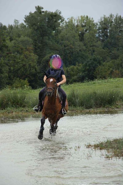 Allow me to introduce Lucky. An adorable 4-year-old curly gelding. Extremely curly, very affectionate, and incredibly gentle. Ridden by children, he would make an excellent family horse. He is versatile (show jumping, dressage, cross-country, hacking) and has already completed a small jumping course. He rides alone and in company on hacks. He lives both in the field and in a stable, born and raised in a herd. He is currently barefoot and has very good hooves.