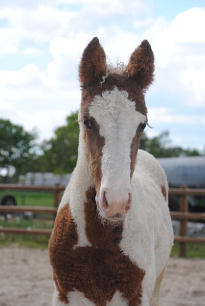Heavenlysmile's Delight Curly Horse March 25, 2025 End height: 15.2 – 15.3 hh Silver-brown pinto KRT25-GEN Delight is a wonderfully affectionate horse with great potential for the future. She knows everything a young horse needs to learn. She is easy to groom, hoof care is straightforward, and she moves well in walk. Bathing is no problem. She also loads effortlessly into a horse trailer! She has already been to a show, where she behaved impeccably and adapted well to new surroundings. Her full sister was sold to America. Delight’s sire is known for his correct conformation and excellent temperament; he is currently in Mexico. Delight is an excellent family horse. She is child-friendly and strong enough to handle an adult rider comfortably. In short: an outstanding prospect for the future! We are asking €7,500 for Delight. Our price is exclusive of VAT, inspection, and transport costs. For questions, more information, or to see additional photos and videos, visit our Facebook page: Heavenlysmile Cob's and Curly Horse. Our website: heavenlysmile.nl Or send us a WhatsApp message! +31 61767 2265