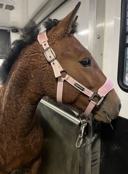 American Bashkir Curly mare, born in 2022, approximately 14.1 hh – with exceptional movement and a lot of personality With a heavy heart – for personal reasons – I am seeking a suitable, long-term home for my American Bashkir Curly mare. This is not an urgent sale. She is a young, very alert and personable mare with a strong presence. Curious, playful, yet attentive and sensitive in handling. She enjoys human contact very much and willingly allows grooming and handling. She is well-behaved, halter-trained, and easily led. She handles solo walks with her handler confidently and calmly. She is already familiar with ground work, as well as various environmental stimuli such as cars, dogs, and children. She was raised in a herd and is accustomed to both pasture and stable with paddock. She is very tidy in her stable. Within the herd, she establishes herself confidently and shows self-assurance. Farrier and veterinarian visits are no problem for her. She is loading well, healthy, vaccinated, and in excellent condition. Currently, she is being gradually and gently prepared for further training, appropriate to her age. Her movement is particularly noteworthy: She demonstrates good scope, rhythm, and a smooth, supple gait with additional quality. Color: Brown with year-round lightly curly Curly coat, dark legs Height: approx. 14.1 hh Awarded as a foal at licensing. Pedigree available; details gladly upon request. Transport can be arranged at an additional cost. Accessories can also be provided for an extra fee. Regularly vaccinated, dewormed, and in good health. The last three photos show her parents. Deliah Sire: Django – Black (Rappe) Dam: Desba – Brown