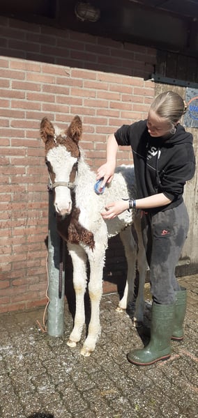 Kitty e Delight from the Heavenlysmile Kitty è la nostra cavalla Curly di 6 anni alta 1.47. È omozigote KRT25 (produce sempre puledri ricci). Di conseguenza, in primavera perde tutta la criniera e la maggior parte della coda. Attualmente ha una bellissima puledra baia argentea di Legend from the Heavenlymile!! Il puledro raggiungerà 1.53-1.55!! Insieme al suo puledro o dopo lo svezzamento di questo puledro, sarà disponibile per una nuova casa. Abbiamo appena iniziato a montare Kitty, quindi ha bisogno di ulteriore addestramento. Accoglie tutto molto bene! Kitty sarebbe molto adatta come pony sportivo o da tempo libero per bambini/adolescenti/piccoli adulti. Anche a causa della sua genealogia quasi unica in Europa, del suo tipo molto fine e della sua eccezionale andatura, è molto adatta anche per la riproduzione di un ulteriore puledro. Kitty è figlia di KC Thundercloud e nipote di Adonis. Offriamo la possibilità di farla coprire/inseminare con un stallone a vostra scelta tramite noi. Desiderate ulteriori informazioni o conoscere il prezzo? Sono qui per rispondere a tutte le vostre domande. Mi piacerebbe molto sapere dove andrà a finire e cosa intendete fare con lei. Per quanto riguarda il prezzo, è utile per me sapere se volete prendere Kitty con o senza il suo puledro. Alleviamo cavalli Curly da 11 anni. Il nostro obiettivo è allevare un cavallo ipoallergenico molto amichevole e versatile. Adatto a giovani e meno giovani, per il tempo libero e lo sport di alto livello! Offriamo a tutti i nostri animali le migliori cure possibili, con le giuste vaccinazioni e una tempestiva cura degli zoccoli. I prezzi indicati sono al netto dell'IVA, delle ispezioni e dei costi di trasporto. Se desiderate ulteriori informazioni o avete domande, non esitate a scrivermi un messaggio!