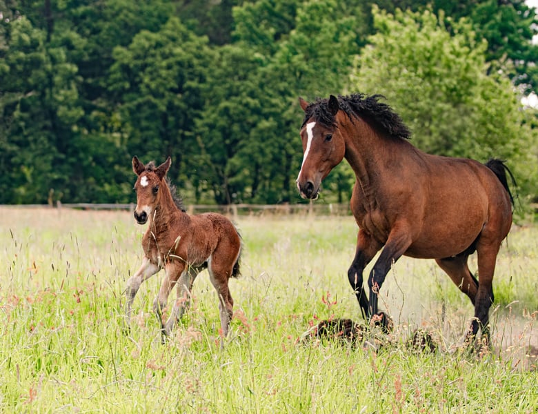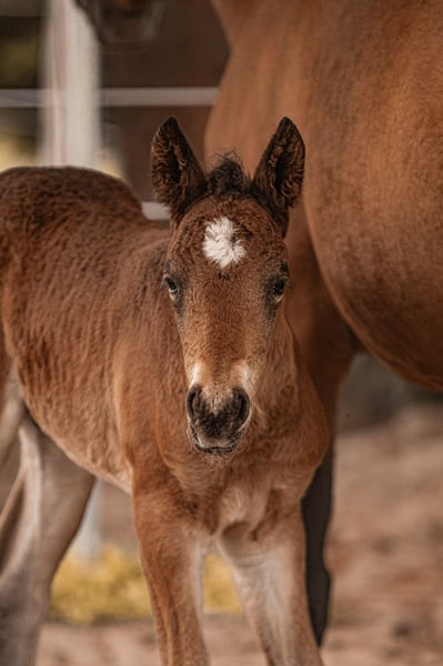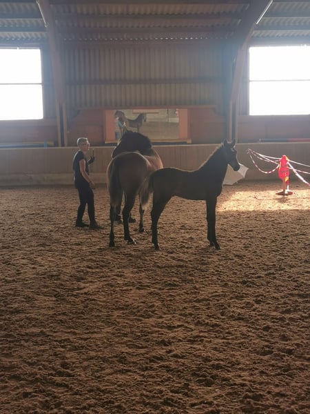 Jeune mâle Curly Horse de 2024 – futur cheval de confiance, polyvalent et doté d’un pedigree exceptionnel Ce mâle Curly Horse exceptionnel, de la génération 2024, séduit pleinement : avec son caractère charmeur, sa silhouette harmonieuse et sa taille finale prévue d’environ 154 cm, il constitue un jeune étalon intéressant aussi bien pour le cavalier de loisir ambitieux que pour la reproduction. Ce petit cavalier bai, avec son pelage marbré, a été primé en tant que foal et grandit dans une élevage expérimentée et attentionnée, en groupe. En hiver, il est en box ouvert, et en été, il passe 24/7 au pré avec sa mère, son père, ses tantes et d’autres jeunes chevaux. Il est ainsi parfaitement socialisé. Il se montre bien élevé – manipulé en licol, ferré et chargé sans problème, attentif et toujours agréable à manipuler. Sur le plan mental, il se révèle sincère, extrêmement courageux et désireux d’apprendre, avec une sérénité naturelle qui en fera un vrai cheval de confiance pour l’avenir. Comme tous les Curly Horses, il séduit par son extérieur robuste, facile d’entretien, et par la structure de son pelage hypoallergénique, qui rend cette race si unique. Les personnes allergiques ne réagissent ni à son pelage ni à sa salive. Son pedigree est impeccable : ses lignées combinent des lignes éprouvées de la sélection Dry Creek, avec Spartacus et le légendaire étalon d’élite Heidberg’s Nancho Nova – une alliance qui promet qualité, polyvalence et bon tempérament.