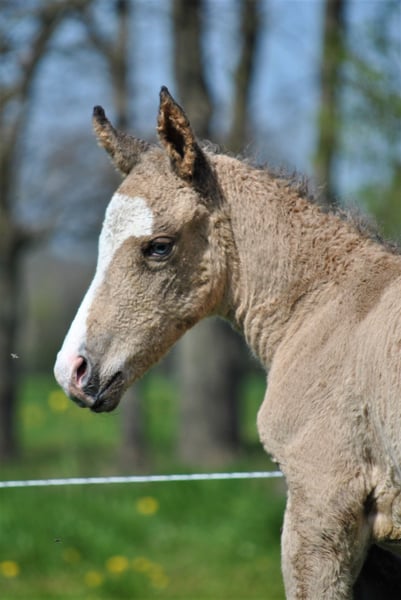 Stunning Overo Buckskin Filly, Curly Coat, 15.0 hh, born 2023