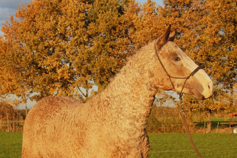 He would be perfect for breeding and is a rarity, as he brings completely new bloodlines to Europe, and his foals will always have a curly coat due to his extremely curly coat.