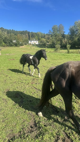 Zum Verkauf steht unser beeindruckender Hengst Chocolate Crisp Oreo. Oreo wurde am 05. Juli 2019 geboren und ist somit 7 Jahre alt. Er hat bereits sieben Fohlen gezeugt, an die er seine hervorragenden Eigenschaften zuverlässig weitergegeben hat. Besonders hervorzuheben sind sein sehr schöner, muskulöser und kompakter Körperbau sowie seine außergewöhnliche Farbe mit seiner attraktiven Scheckung und seine stolze Präsenz. Charakterlich überzeugt Oreo durch seine ausgeprägte Menschenbezogenheit, Neugier und Unerschrockenheit. In der Herde zeigt er sich aufmerksam und beschützend gegenüber seinen Stuten und Fohlen. Oreo wurde ganzjährig im Offenstall gemeinsam mit seinen Stuten und Fohlen gehalten. Aufgrund der Aufgabe unserer Zucht lebt er aktuell im Offenstall zusammen mit seinem Sohn. Bei Interesse oder weiteren Fragen freuen wir uns über Ihre Nachricht.
