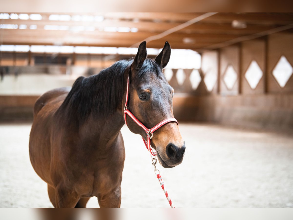 Der 18-jährige Tschechische Warmblut-Wallach Nashville (Stockmaß ca. 169cm) fand im Oktober 2025 den Weg zu uns zurück in die Pferdeklappe. Nun wartet der liebe Kerl sehnlichst darauf, seinen ganz persönlichen Herzensmenschen zu finden. Nashville ist durch und durch ein Pferd, wie man es sich nur wünschen kann: menschenbezogen, sanft, anhänglich und stets bemüht, alles richtig zu machen. Er genießt jede Form von Zuwendung und kann vom Kuscheln gar nicht genug bekommen. Er wünscht sich unbedingt eine pferdeerfahrene Person an seiner Seite, die mindestens genauso gerne kuschelt wie er selbst, viel Zeit für ihn hat und mit ihm vom Boden aus die Welt entdeckt. Aufgrund einer verknorpelten Zubildung auf der Wirbelsäule (Sattellage) ist Nashville leider nicht mehr reitbar. Für abwechslungsreiche Bodenarbeit, Lektionen an der Hand und spannende Entdeckungstouren ist der liebe Kerl aber immer zu haben! In seinem früheren Zuhause wurde er zwei- und vierspännig gefahren und wir können uns gut vorstellen, dass ihm immer noch Freude bereiten würde. Für sein zukünftiges Zuhause wünscht sich der sanfte Nashville eine Offenstallhaltung (mit 24-Stunden-Heu) in einer kleinen, harmonischen Herde, wo er ausreichend Bewegung und Sozialkontakt hat. Nashville zeigt gegenüber Stuten ein sehr „hengstiges“ Verhalten, weshalb für ihn eine reine Wallachgruppe deutlich bevorzugt wird. Auch innerhalb einer Wallachherde ist er eher ranghoch und nicht immer einfach im Umgang. Seine zukünftigen Herdenkollegen sollten daher nicht zu sensibel und eher rangniedrig sein, damit ein harmonisches Zusammenleben möglich ist. Eine Nachtbox mit täglicher Weidezeit wäre ebenfalls möglich – wichtig ist ein stabiles Umfeld mit liebevoller Betreuung.
