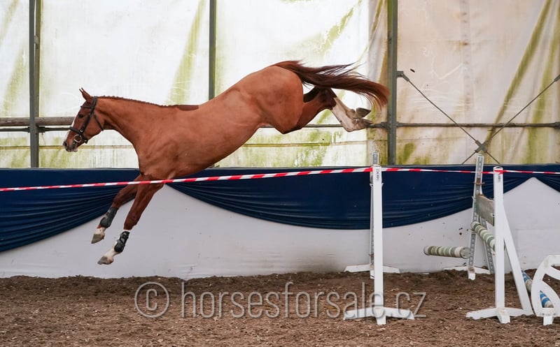 ALVIN - youngster for ambitious riders, show jumping/equitation, top pedigree Alvin is a very promising youngster with plenty of scope and excellent pedigree. He was started under saddle in the winter and is now ready for his show debut, can run a small course. Alvin has a nice brain, is motivated, ready to learn, and shows really a great jump and a lot of quality. He would suit for an adult amateur, but also for an ambitious professional rider. His father was successful up to GP level, his mother is currently doing 130/135 classes. Price: 29.000 €, More information or videos under +420602862723 https://youtu.be/u91oWvPbjd0 https://youtu.be/KUQ4yLXYfzA Born: 2022, Height: 168 cm, Pedigree: Aristo z x Untouchable Location: 1,5 hour from Prague, Czech republic, Central Europe. *** more horses on my website www.horsesforsale.cz ***