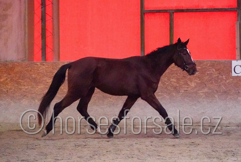 CONQUIST - youngster for smaller parcours or hobby riding Conquist is a nice and communicative youngster with very nice jump and very promising pedigree. Comes directly from breeder’ s hand, shows nice technique and movement, was started under saddle recently (can trot and canter under rider), knows horsemanship communication, is easy to load and transport. Conquist has weak fetlocks - that’ s why we offer him for lower sport, where it should not bother him. Price: 7.000€ More information or videos under +420602862723 https://youtu.be/7ebUX3m2LY8 Born 2022, Height: 167cm, pedigree: Conquistador (Clinton) x Zirocco Blue x Sandro Z Location: 37001 Ceske Budejovice, Czech republic. Central Europe. Transport can be provided. *** more horses on my website www.horsesforsale.cz ***