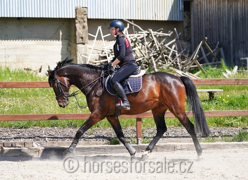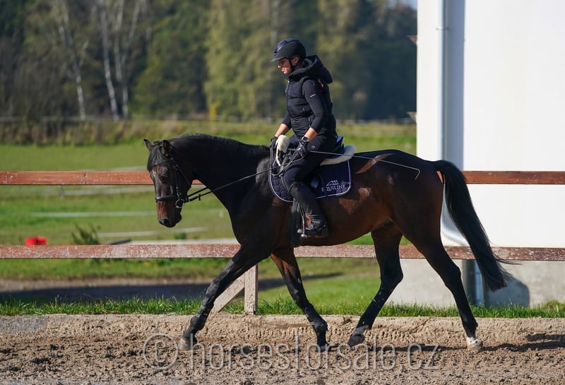 CANDYMAN - allrounder with perfect rideability and lovely movement Candyman is an easy going horse with perfect brain and great rideability. He passed his basic education, is very willing to learn and is lovely to ride. He is not looky or spooky, is calm and nice in mouth. He gained perfect movement form his father, from mother side there is talent for jumping available. Candy shows nice technique in freejumping, made his first jumps under saddle recently and makes it very well. Candyman comes directly from breeder, is sound, x-rays are available. After an injury in foal-age there is a remark on his spine, but it doesn’t bother him at all and he can be trained and ridden fully normally. NEW PRICE 10.000€, More information or videos under +420602862723 https://youtu.be/LYUMp-GyWmg https://youtu.be/GNTbpE2Bfs4 https://youtu.be/vPCaxXiwcZk Born: 2019, Height: 171 cm, Pedigree: Firestone (Johnson) x Landino Location: 45 minutes from Prague, transport can be provided. *** more horses on my website www.horsesforsale.cz ***