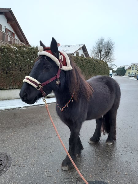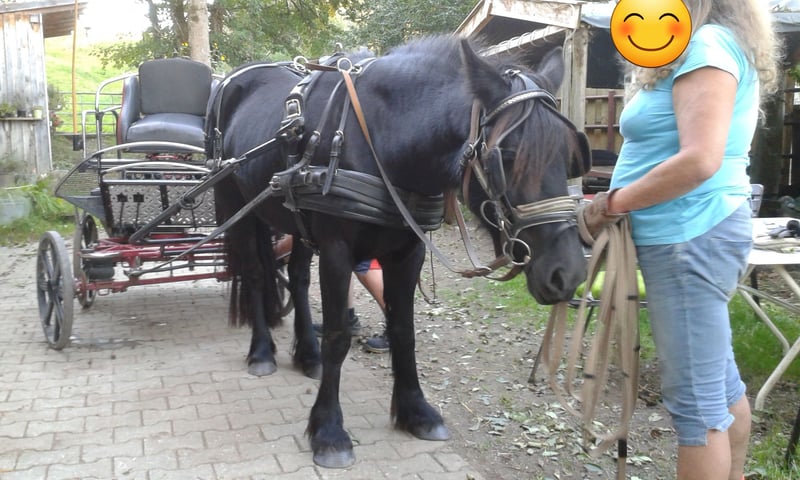 Ciena de Kingmaker, Dales Pony Stute, geb. 05/2012, 1,38 m groß (deckt Reiter bis 1,75 m gut ab, wenn diese nicht mehr als 60 kg wiegen) - volles Papier, registriert bei der Dales Pony Society in England - ein- und zweispännig eingefahren - freizeitmäßig geritten auf dem Platz und im Gelände – von Erwachsenen und Kindern - Horsemanship, Gelassenheitstraining, Bodenarbeit, Longieren, Spaziergänge - sehr menschenbezogen, klar im Kopf, hat ein angenehmes Maß an Energie, ist aber jederzeit händelbar, zuverlässig im Gelände - geländesicher, schmiede- und verladefromm - rangniedrig, verträglich mit Stuten und Wallachen, in verschiedenen gemischten Herden stets problemlos - lebt am liebsten im Offenstall - barhuf, war nie krank (kein Ekzem, kein EMS, nie Rehe), Robusthaltung gewohnt, langlebige Rasse - stets up to date mit Impfungen, professioneller Hufpflege, Zahnbehandlung, Entwurmungsmanagement - 24/7 Weide aufgrund der Rasse nicht geeignet, stundenweise kein Problem - 24/7 Heufütterung im Offenstall möglich, aktuell bei zeitgesteuerter Fütterung gehalten - kann ihr gesamtes Zubehör mitbringen - keine Abgabe an Händler oder Schulbetriebe - Verkauf aufgrund von Beendigung der Pferdehaltung Ciena sucht einen Lebensplatz bei einem Menschen, der sie und die seltene Gelegenheit, ein Pony dieser wunderbaren Rasse zu bekommen, schätzt. Wer Pferde nicht als Sportgeräte, sondern als Freunde betrachtet, kann hier eine Freundin fürs Leben finden. Ich freue mich auf Ihre/deine Nachricht! Der Preis ist verhandelbar.
