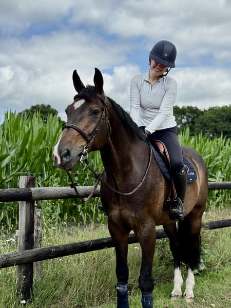 This 14-year-old gelding has a solid background, having previously competed up to 130 cm. With his current rider he has been jumping comfortably around 115 cm. He has always stayed sound and healthy and never required veterinary treatment during current ownership. A reliable and durable horse. On the flat he is very pleasant to ride, slightly on the lazy side, while jumping he shows more power and therefore benefits from a rider who can ride him forward and support him with the leg. He would suit a confident amateur rider looking for a genuine all-round horse, or a rider wanting to develop further with an experienced partner. Due to his scope and power, he may be better suited to a more assertive rider rather than a very light or passive one. In daily handling he is truly exceptional – kind, easy, and uncomplicated in every situation. Well-mannered in the stable, easy to handle, travels calmly, good with farrier, and has no bad habits. A horse with a lovely temperament and a beautiful appearance to match.