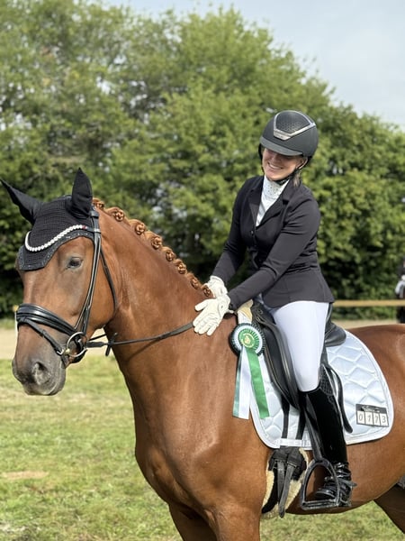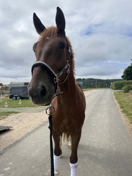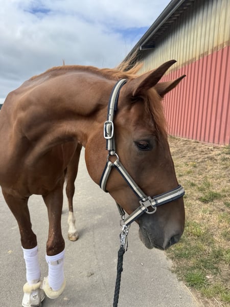 Timberlake ist ein bildschöner, 2021 geborener Wallach mit hervorragenden Grundgangarten und tollem Charakter. Er zeigt sich im täglichen Training hoch motiviert, eifrig und immer lernbereit. Super bequem zu sitzen. Er ist nicht für Anfänger geeignet, da er einen sicheren, angstfreien Reiter braucht, der ihn weiter fördert und ihm klare Führung gibt. In dieser Saison konnte Timberlake sich bereits in Dressurpferdeprüfungen A platzieren und zeigt dabei deutlich Potenzial für höhere Klassen. Ein Pferd mit Zukunft für ambitionierte Reiter, die Freude an feiner Dressurarbeit haben! Standort: 65366 Bei Interesse gerne eine Nachricht. 015161678099