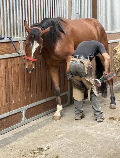 "Bobby Brown" ist ein 5-jähriger, 1,55m großer Wallach. Er wurde in den letzten Monaten von mir angeritten und zeigt sich unter dem Sattel motiviert und aufmerksam. Derzeit wird er Schritt, Trab und Galopp in der Halle geritten und macht erste kleine Sprünge mit dem Reiter. Dies muss aber noch gefestigt und weiter ausgebildet werden - eine schöne Grundlage ist vorhanden. Vom Charakter her ist Bobby ein absolut lieber und freundlicher Kerl. Zudem überzeugt er durch tolle Grundgangarten in welchen er toll an den Hilfen steht. Er ist derzeit jedoch kein Anfängerpferd, da er noch in der Ausbildung steht und Sicherheit sowie konsequente, ruhige Hilfen benötigt. Anfragen daher bitte nur mit ausreichender Kenntnis. Was er bereits kennt: - Gelassenheitsübungen mit Stofftieren, Plane und Dualgassen: macht er entspannt und gelassen mit - brav an der Longe - Hunde, Hühner, Traktoren sind Alltag - kurze Spaziergänge - Freispringen, erste Stangenarbeit sowie Sprünge - Ansätze der Anlehnung bzw. generell Stellung & Biegung Aufgewachsen ist Bobby in einer großen Herde auf riesigen Koppeln. Bei mir steht er in einer Box mit Paddock und tagsüber entweder mit seinen Jungs (4 Wallache) zum spielen oder mit meiner anderen Stute draußen. Er bringt die besten Voraussetzungen mit, um mit Geduld und liebevoller Förderung ein richtig tolles Reit- oder auch Sportpferd zu werden. Ideal für jemanden, der Freude an der Ausbildung junger Pferde hat und ein freundliches, unverdorbenes Pferd sucht, das noch am Anfang steht aber sicher Potenzial und Arbeitswillen mitbringt. Eine kleine AKU ohne Befund von Ende 07 diesen Jahres liegt vor. Zur weiteren Ausbildung kann er gerne weiterhin bleiben. Preis steigt mit weiterer Ausbildung.