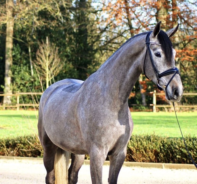 Ich verkaufe, im Auftrag, einen außergewöhnlich talentierten 5-jährigen Wallach, mit einer spannenden und leistungsgeprägten Abstammung. Sein Vater ist ein Lusitano, die Mutter, ist die Vollschwester der erfolgreichen Stute Finetime, von Fürstenball. Hier trifft Rittigkeit auf Eleganz und Leistungsbereitschaft. Mit einem Stockmaß von ca. 1,75 m bringt er ideale Voraussetzungen für den großen Sport mit. Der Wallach ist bereits in Reitpferde- sowie Dressurpferdeprüfungen der Klasse A hoch platziert und befindet sich aktuell auf dem Weg zur Dressurpferdeprüfung Klasse L. Er überzeugt durch drei sehr gute Grundgangarten, viel Balance und einen stets motivierten Arbeitswillen. Dabei zeigt er sich super lieb, ehrlich und unkompliziert im Umgang, sowohl unter dem Sattel als auch im täglichen Handling. Ein absoluter Zukunftsstar für ambitionierte Amateure oder Profis, die ein junges, qualitätsvolles Pferd mit Perspektive suchen. Weitere Informationen, Fotos und Videos gerne auf Anfrage.