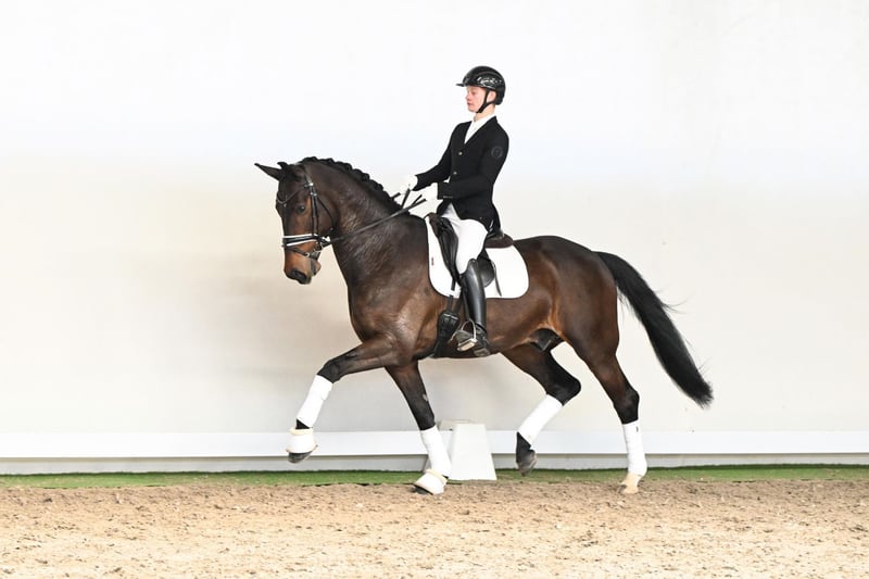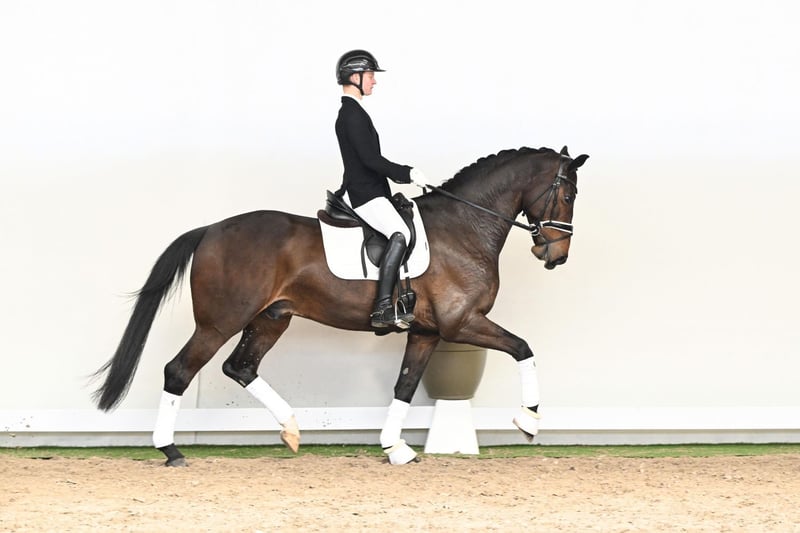 Jackson is a six-year-old gelding who perfectly embodies what discerning riders seek for their daily work and athletic development: rideability, comfort, and an uncompromisingly positive attitude. With his refined sensitivity combined with a strong willingness to perform, he impresses as a modern dressage partner, offering his rider a secure yet exceptionally enjoyable ride from the very first moment. His outstanding walk deserves special mention – exceptionally expressive, ground-covering, clearly four-beat, with great overreach – a quality that truly sets him apart from the crowd. Jackson is already trained at M-level, performing his movements confidently, always supple, and with a clear understanding of his tasks. His movement quality, rhythm, and natural relaxation make him a horse that brings joy every day while offering genuine sporting potential. In terms of pedigree, Jackson leaves nothing to be desired: as a son of the celebrated sire Jameson RS2, he combines the influential Dutch dressage lines of Zack, Negro, and Krack C – a genetic foundation synonymous with quality, rideability, and international performance ability. Through his dam line, influenced by Loran and Lord, Jackson also brings valuable Holsteiner blood, purposefully contributing strength, stability, and elasticity to modern dressage breeding. Jackson presents himself as a supple, school-wise gelding with a clear mind and exceptional rideability – a horse that not only impresses but consistently inspires. A dressage horse who delivers an extraordinary ride from the very first moment – and continues to delight day after day.