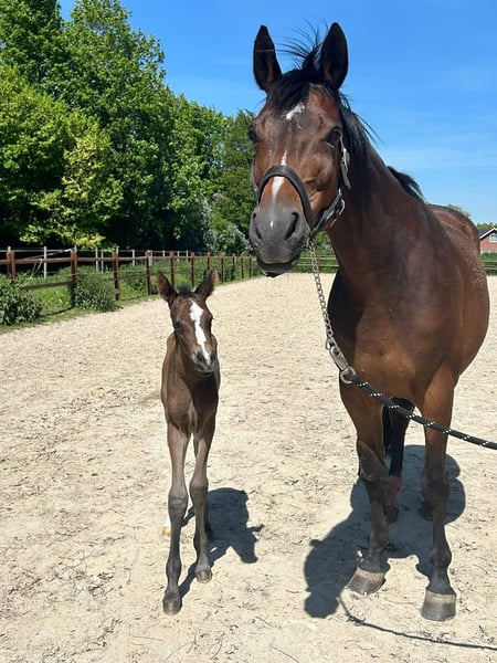 Amazing mare by Bueno SL/Rockefeller/Michellino. Very well moving with three fantastic gaits with a lot of power. She is beautiful with long legs, and will be amazing at the future big arenas. She is sweet as sugar and loves human contact. Last picture is of her mother. Feel free to contact me for more information.