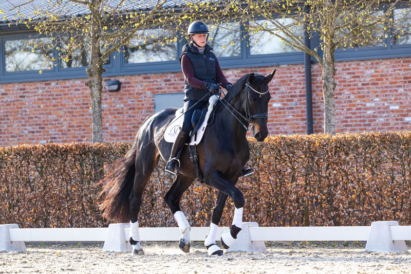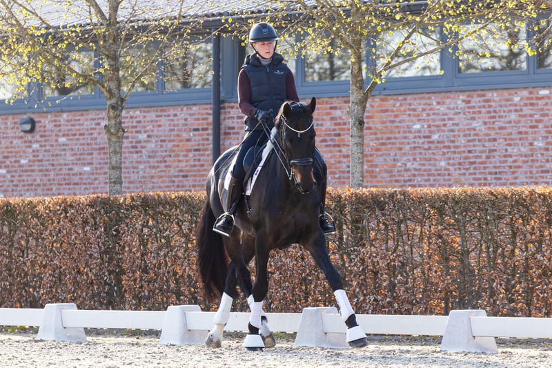 Dancing Queen jest siostrą półkrwi do Heiline's Danciera, olimpijskiej klaczy jeżdżonej przez Carinę Cassøe Krüth na Igrzyskach Olimpijskich w Tokio, która w 2023 roku zajęła 5. miejsce na świecie w ujeżdżeniu; oraz córką ogiera Revolution – byłego Młodzieżowego Mistrza Świata, złotego medalisty i Duńskiego Wstęga Roku 2025. Dzięki temu jej rodowód opiera się na najwyższej klasie osiągnięć sportowych i sprawdzonej umiejętności jazdy. Na trzyletnim teście Dancing Queen uzyskała 780 punktów, zdobywając kilka ósemek w ocenie licencyjnej dla koni duńskiej wstęgi. To wysoka, dobrze zbudowana klacz o dużych, wyrazistych chodach, z dobrym usposobieniem i niezawodnym temperamentem. Obecnie pracuje na poziomie małej turni, z bardzo łatwymi zmianami biegów, które są czyste, ekspresyjne i rozwijają się z łatwością – mimo że w wieku 4 lat była w ciąży, co świadczy o jej szybkim postępie w treningu i potencjale do dalszego rozwoju. Udało jej się również skutecznie wyprodukować piękne źrebięta metodą transferu zarodka podczas treningów, co potwierdza jej wysoką płodność i łatwość krycia. To duży, silny koń z obiecującą przyszłością zarówno w sporcie, jak i hodowli. Cena obniżona, ponieważ konieczna jest sprzedaż z powodu ciąży jeźdźca. Lokalizacja: Kalmthout, Belgia Więcej informacji i wideo dostępne na życzenie.