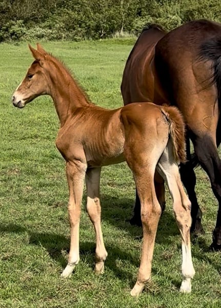 Beautiful Chacfly colt by the mother of my super star Aura Ravnes-Have. The dam is by Favorit Ask/A-Dur/Atlantic. She has produced some very successful and interesting jumping horses. One of them being Aura Ravnes-Have, who has been selected for and competed at Falsterbo Horseshow more years in a row, at the FEI WBFSH Jumping World Breeding Championship For Young Horses in Lanaken, as well as at the WBFSH Studbooks Jumping Global Champions Trophy as 6 and 7 year old, winning a silver and bronze medal together with her DWB team. An other offspring by the mare is Caiton Ravnes-Have who is also a successful international show jumper representing Denmark at the European Championship this year. I have 4 offsprings from the same mother: Aura by Cantolar from 2017, mentioned above including her full little brother from 2020, a 1 year old stallion by Diablue and the Chacfly colt from this year. The video is his sister Aura from her last competition.