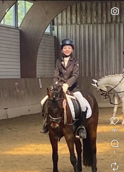 Sir Henry ist ein traumhaft lieber, verschmuster und talentierter 5-jähriger Wallach, der auf der Suche nach seinem eigenen kleinen Menschen ist. Bei uns im Schulbetrieb geht er etwas unter – er wäre das perfekte erste eigene Kinderpony, das mit einem festen Reiter richtig aufblühen würde. Er ist extrem leicht an die Hand zu reiten, sucht von selbst die Verbindung, bleibt weich im Maul und ist insgesamt sehr angenehm zu sitzen – vor allem sein bequemer und gesetzter Galopp macht ihn zu einem tollen Kinderpony. Dieses Jahr hatte er seine erste Turniersaison und konnte direkt überzeugen: • Mehrfach Sieger im Reiterwettbewerb • Platzierung in einer WBO-Dressur • Aufmerksam, motiviert und immer bemüht, alles richtig zu machen • Für sein junges Alter sehr brav, klar im Kopf und verlässlich Natürlich kann er sich mit seinen 5 Jahren auch mal erschrecken – er ist ein junges Pony. Aber er bleibt immer gut zu händeln und zeigt einen absolut positiven Charakter. Er zeigt Talent am Sprung, springt kleine Parcours und bereits einen Ochser. Er ist motiviert und versucht immer, es richtig zu machen. Mit etwas weiterer Unterstützung entwickelt er sich sicher zu einem tollen kleinen Springer für WBO-Prüfungen. Er eignet sich als Kinderpony, für den Reiterwettbewerb und E-Dressur, geht sicherlich mit einer guten Reiterin auch eine A Dressur. Er ist ein Allrounder, wäre auch für Freizeit & Gelände geeignet. Im Springen noch wenig Erfahrung, aber talentiert.