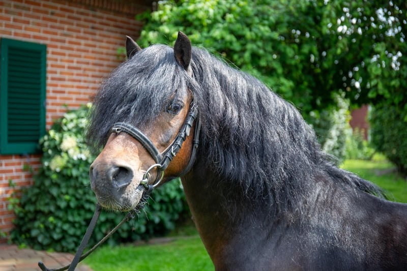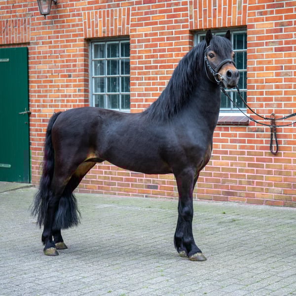 Nieuw Lohoff Chester Dartmoor-pony, geboren op 05-05-2012, donkerbruin, 123 cm Chester is een 13-jarige gekeurde hengst die niet alleen door zijn uitstraling opvalt. Hij is een charmante, knappe ruin die probleemloos met merries te rijden is. In 2017 werd hij gekeurd in Luhmühlen door het ZfdP (Zuchtverband für deutsche Pferde) en werd hij ingeschreven in het Hengstbuch I. Daarnaast werd hij in 2020 eveneens ingeschreven in het Hengstbuch I van het Pferdestammbuch Weser-Ems e.V. Zijn prestatieproef in het rijden heeft hij succesvol afgerond in 2020. Chester dekt probleemloos in natuurlijke dekking. Op de laatste foto's zijn twee van zijn nakomelingen te zien. Meer foto's stuur ik graag op aanvraag.
