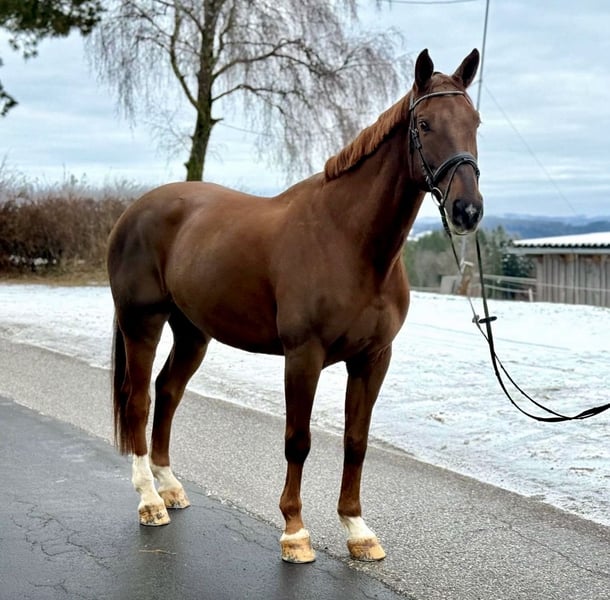 Dieser 10 jährige Wallach ist ein toller Allrounder. Vor allem im Springsport liegt bei diesem Sohn des Kannan die große Begabung. Mit seinen 165 cm ist dieses deutsche Sportpferd auch für kleinere Reiter sehr gut geeignet. Auch in der Dressur macht der super kompakt gebaute Wallach eine super Figur! Aber auch das entspannte reiten draußen im Gelände macht dem Fuch Spaß. Das Pferd ist beschlagen, aktuell geimpft und entwurmt! Weitere Infos und Videos gerne per WhatsApp oder telefonisch unter: 00436603632373 Standort: Pelmberg 15/ OÖ Besichtigung und Probereiten gerne nach Terminvereinbarung! Der Transport des Pferdes kann gerne übernommen werden