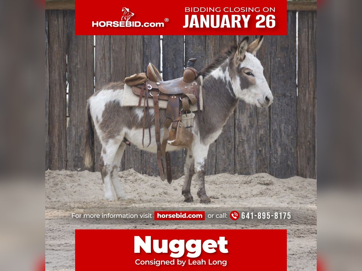𝐉𝐀𝐍𝐔𝐀𝐑𝐘 ⭐️𝑨𝒍𝒍 𝑺𝒕𝒂𝒓 𝑳𝒊𝒏𝒆𝒖𝒑⭐️ Happening now thru MONDAY | JANUARY 26th - Available EXCLUSIVELY on HorseBid's website! For more details and to register visit: www.Horsebid.com CONSIGNOR CONTACT: Leah Long 641-895-8175 LOCATION: Sulphur Springs, TX BREED: Mini donkey REGISTERED: No COLOR: Paint HEIGHT: 41 inches AGE: 3 GENDER: Jack Nugget is a 3 year old Jack that stands 41 inches tall and is hands-down one of the friendliest donkeys you will ever meet. This little guy doesn’t wait to be caught he meets you at the gate, follows you around the farm like a puppy, and soaks up attention, especially from kids. Nugget is the kind that makes everyone smile the moment they meet him. He puts his head right in the halter, is easy to catch, groom, saddle, and bathe, and stands great for the farrier. Nugget rides and has been ridden by kids around the farm, making him a fun and safe little partner for farm adventures. One of his coolest party tricks? Nugget is trained to lay down and does it politely and willingly no drama, just good manners. Fair warning: you will hear him every morning when you wake up. Nugget likes to announce that a new day has started and he’s ready to be part of it. He’s full of personality, charm, and character, and truly loves being involved. Nugget would make a fantastic addition to ANYONE’S farm whether you’re looking for a family-friendly donkey, a kid-safe companion, or just a lovable barn favorite. This is a special little donkey that’s hard not to fall in love with. 💛