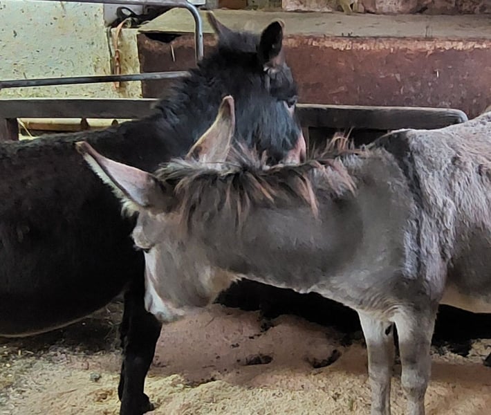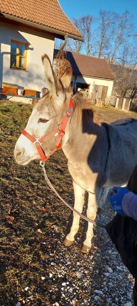 Hengst und Stute ruhig brav Freilandhaltung gewöhnt, Halfterführig, entwurmt, kennen Hufe heben, putzen, Katzen, Hunde, Pferde, Schafe uvm lassen sich frei verladen. Preis pro Esel