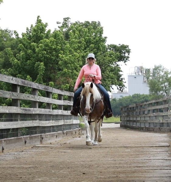 VENTE AUX ENCHÈRES EN LIGNE Placez vos offres sur www.PlatinumEquineAuction.com Offre de départ : 3 500 $ L’enchère se termine le 9 juin 2024 Vous cherchez une nouvelle selle ? Découvrez White Rock Saddles sur notre site internet ou sur Facebook ! « Begee » est un hongre Gypsy Halflinger de 14,1 mains, âgé de 8 ans, de robe roan rouge. Si vous recherchez le cheval de randonnée le plus unique, absolument magnifique, doux et parfaitement dressé, c’est lui ! Il possède la personnalité la plus amusante, adorable et un peu fofolle que nous ayons présentée cette année. Il est incroyablement bien éduqué, et il est rare de trouver un cheval avec cette lignée et cette maniabilité ! Begee est monté en main d’une seule main, il se déplace parfaitement aux aides et s’arrête très bien. C’est un cheval aventureux, qui explore tous les nouveaux sentiers et lieux comme s’il était en quête d’un trésor caché. Il serait le compagnon idéal pour un cavalier de randonnée qui aime s’amuser en monture ! Il se comporte très bien seul ou en groupe, et est heureux où que vous l’emmeniez. Il traverse l’eau et franchit les obstacles avec aisance. Begee ne manquera pas de faire sensation partout où vous l’emmènerez. Il est absolument magnifique, d’une rare robe roan rouge exceptionnelle ! C’est un véritable tendre qui réclame toute votre attention. Il adore tout ce qui concerne « Begee ». Pensez à Johnny Bravo… C’est lui ! Vous tomberez forcément sous le charme de sa personnalité. Il charge, transporte, mène, se fait baigner et s’attache très bien. Quelqu’un aura la chance de posséder ce cheval de trail amusant et intrépide ! Ne ratez pas cette opportunité unique de posséder un cheval aussi coloré, talentueux et plein de personnalité ! Pour plus d’informations, veuillez contacter Blair de North Texas Horse Company au 817-757-3046. Nous adorons parler de lui ! Nous sommes situés à Weatherford, Texas, et pouvons organiser un transport abordable vers n’importe quel endroit !