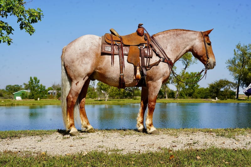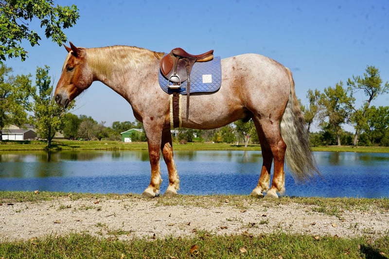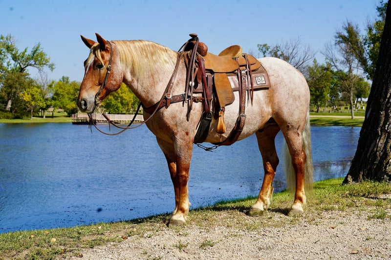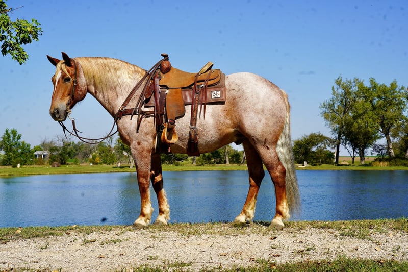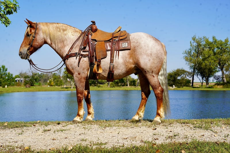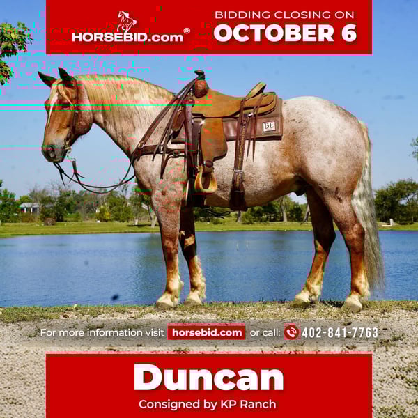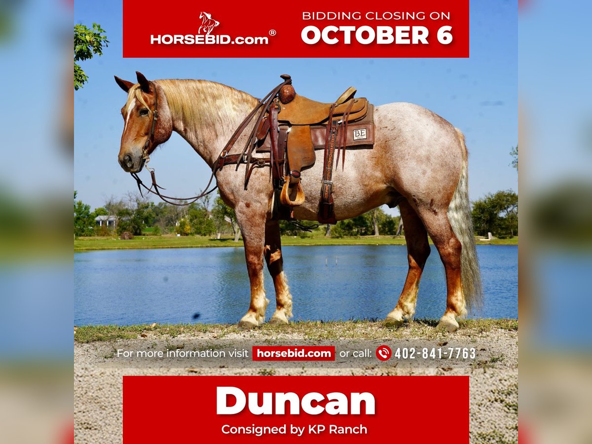 🍂 𝓐𝓾𝓽𝓾𝓶𝓷 𝑨𝑳𝑳 𝑺𝑻𝑨𝑹 𝑳𝑰𝑵𝑬𝑼𝑷 🍂 Happening now thru MONDAY | OCTOBER 6th - Available EXCLUSIVELY on HorseBid's website! For more details and to register visit: www.Horsebid.com CONSIGNOR CONTACT: Kp Ranch 402-841-7763 LOCATION: Corsica SD BREED: Draft cross REGISTERED: No COLOR: Red roan HEIGHT: 15.2 AGE: 11 GENDER: Gelding Duncan is awesome he is broke the best and gentle for anyone that wants to climb on him, he has done everything and does it well, he has been a ranch horse, trail horse, kids/family horse, 4H, open shows, ridden both English and western, he is a 11 year old 15.2 hands and weighing 1500lbs, this big is as sweet and kind as they they loves attention, great handle soft in the face neck reins, loped around fantastic, very level headed and not spooky at all, good to catch, great for farrier and vet, loads/hauls/unloads great, easy keeper good with other horses, great all around family horse. Duncan befits from little special care if used hard. Call or text 402-841-7763 for more information.
