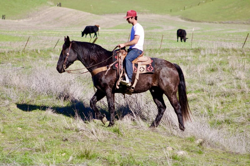 ONLINE AUCTION Place your bids at www.PlatinumEquineAuction.com Starting Bid $3500 Auction ends December 28th, 2025 Need a new saddle? Check out White Rock Saddles on our website or Facebook Bruce — The Blue Roan Draft Cross that will take you anywhere 13 years old • 15.1 hands • Blue Roan • Draft Cross • Built stout Some horses just make life easier, and Bruce is one of them. He’s a blue roan draft cross with a calm, steady presence that makes riding enjoyable, whether you’re out working or taking a quiet trail ride. If you’ve been looking for a horse that is broke, safe, gentle, and confidence-building, Bruce checks every box. He has been the go-to mount here for company riders, beginners, and anyone who wants a smooth, reliable partner—and he always takes care of his person. He’s seen real ranch obstacles and plenty of unusual things that make most horses hesitate: tarps blowing in the wind, flags, tires, bridges, pool noodles, bouncy balls, dogs underfoot, cattle moving around him, and town traffic. Bruce stays relaxed, keeps his head, and simply walks right on through. He also has true ranch experience — he’s been used to gather cattle and has stood quiet at brandings. He understands a job, stays out of your way, and remains dependable when things get busy. On the trail he’s confident and sure-footed, and he rides in the arena correct and easy, just like a good lesson horse. He neck reins, stops soft, moves off your leg, and lopes smooth, balanced circles that are comfortable for any rider. Just swing a leg over and go — he keeps things simple. He’ll cross water, step over logs, push through brush, and handle rocky or uneven ground without thinking twice. Whether he’s riding out alone or with other horses, Bruce stays consistent from the first step to the last. He ties, trailers, shoes, bathes, stands to mount, and meets you at the gate. He’s an easy keeper, good in a stall or turned out, and gets along well with other horses. Bruce is the kind of gelding riders feel confident on — safe, broke, kind, and genuinely enjoyable every time you saddle him. Longhorn Ranch — Paicines, California Call or text Dina at 831-537-1915 to come ride Bruce or ask any questions. Nationwide shipping available. ONLINE AUCTION Place your bids at www.PlatinumEquineAuction.com Starting Bid $3500 Auction ends December 28th, 2025 Need a new saddle? Check out White Rock Saddles on our website or Facebook