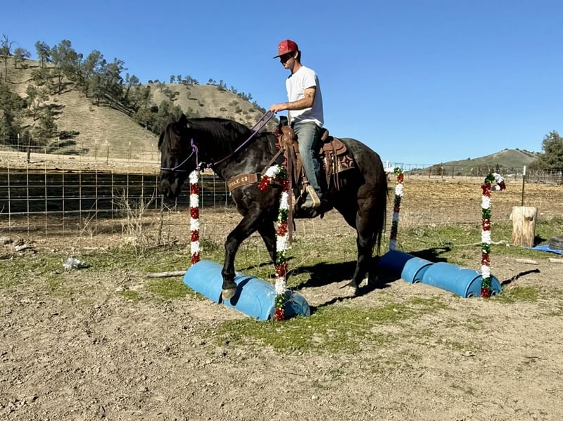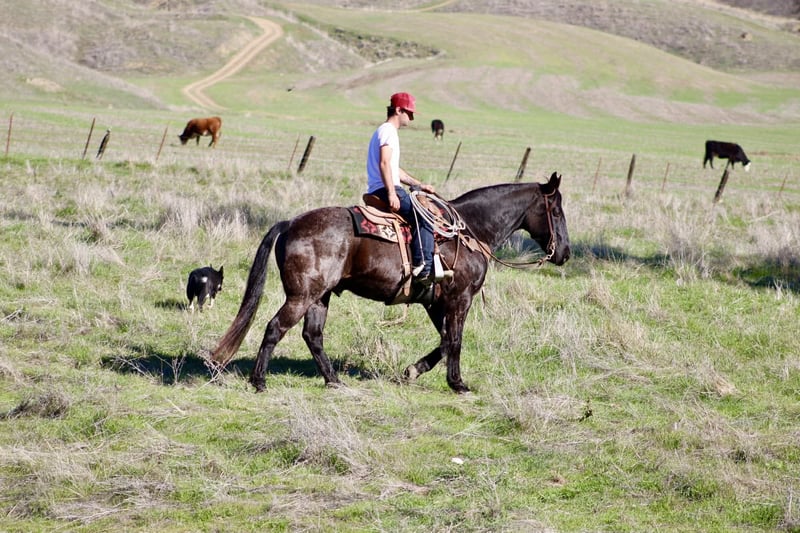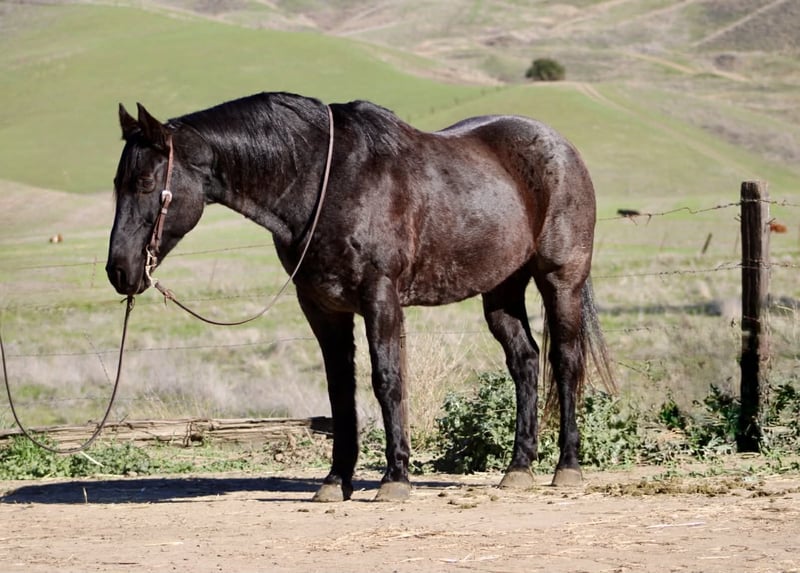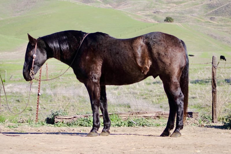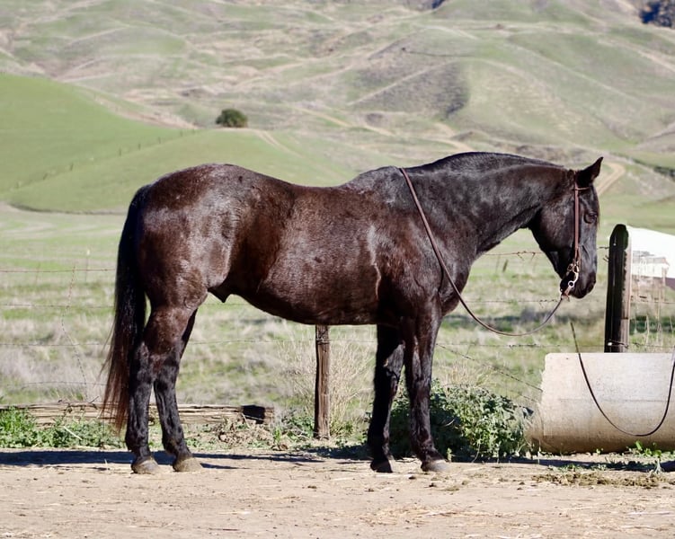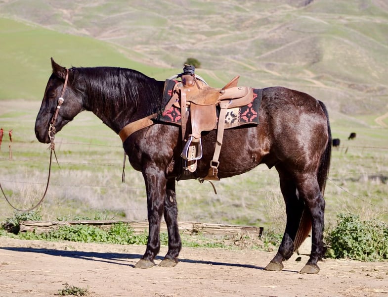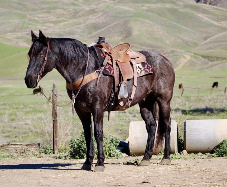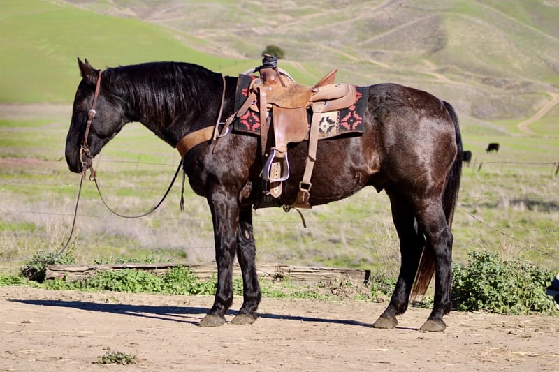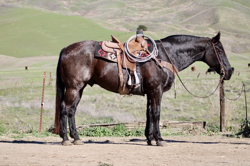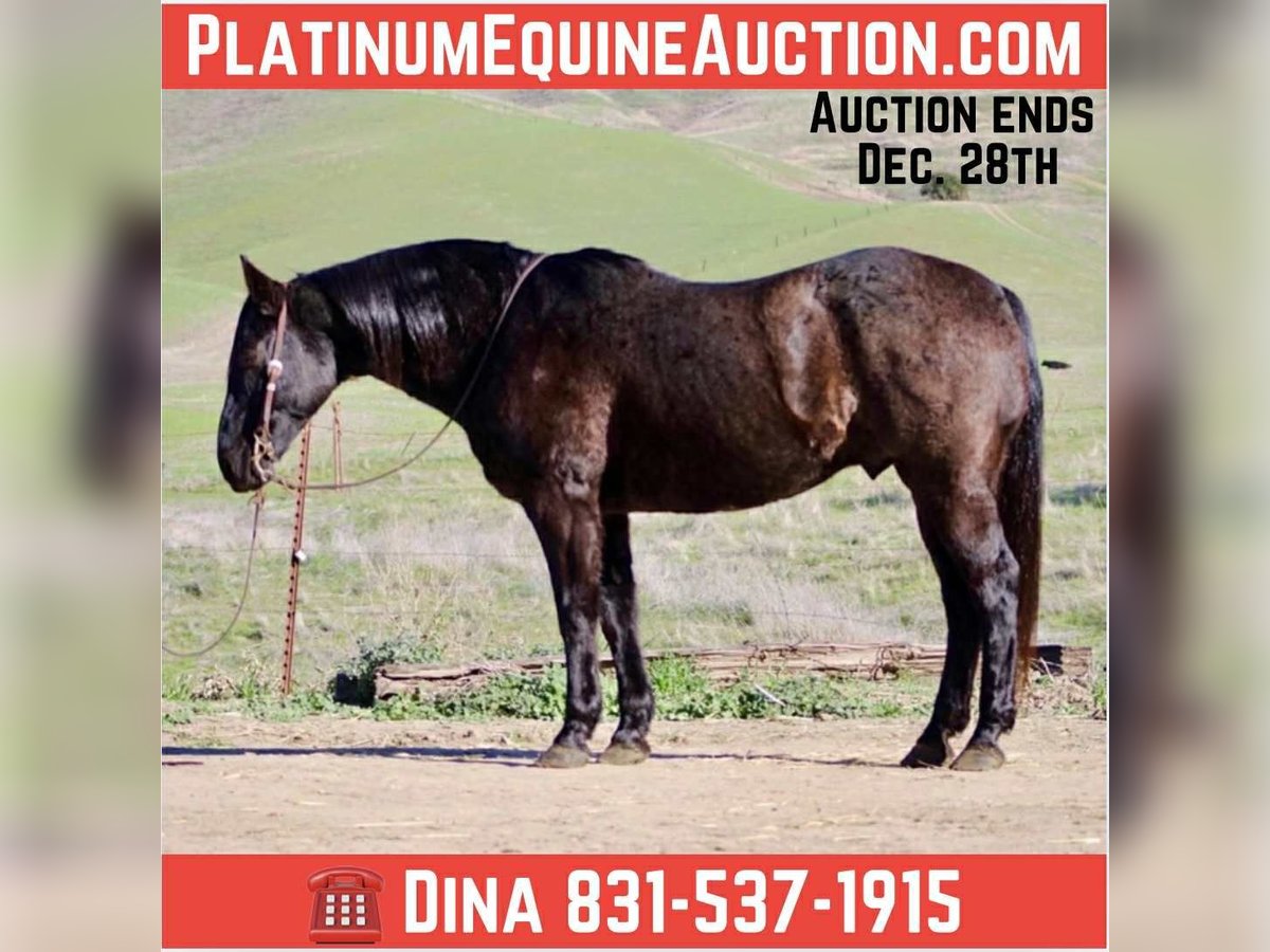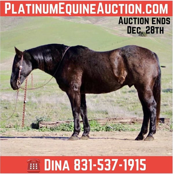ONLINE AUCTION Place your bids at www.PlatinumEquineAuction.com Starting Bid $3500 Auction ends December 28th, 2025 Need a new saddle? Check out White Rock Saddles on our website or Facebook Bruce — The Blue Roan Draft Cross that will take you anywhere 13 years old • 15.1 hands • Blue Roan • Draft Cross • Built stout Some horses just make life easier, and Bruce is one of them. He’s a blue roan draft cross with a calm, steady presence that makes riding enjoyable, whether you’re out working or taking a quiet trail ride. If you’ve been looking for a horse that is broke, safe, gentle, and confidence-building, Bruce checks every box. He has been the go-to mount here for company riders, beginners, and anyone who wants a smooth, reliable partner—and he always takes care of his person. He’s seen real ranch obstacles and plenty of unusual things that make most horses hesitate: tarps blowing in the wind, flags, tires, bridges, pool noodles, bouncy balls, dogs underfoot, cattle moving around him, and town traffic. Bruce stays relaxed, keeps his head, and simply walks right on through. He also has true ranch experience — he’s been used to gather cattle and has stood quiet at brandings. He understands a job, stays out of your way, and remains dependable when things get busy. On the trail he’s confident and sure-footed, and he rides in the arena correct and easy, just like a good lesson horse. He neck reins, stops soft, moves off your leg, and lopes smooth, balanced circles that are comfortable for any rider. Just swing a leg over and go — he keeps things simple. He’ll cross water, step over logs, push through brush, and handle rocky or uneven ground without thinking twice. Whether he’s riding out alone or with other horses, Bruce stays consistent from the first step to the last. He ties, trailers, shoes, bathes, stands to mount, and meets you at the gate. He’s an easy keeper, good in a stall or turned out, and gets along well with other horses. Bruce is the kind of gelding riders feel confident on — safe, broke, kind, and genuinely enjoyable every time you saddle him. Longhorn Ranch — Paicines, California Call or text Dina at 831-537-1915 to come ride Bruce or ask any questions. Nationwide shipping available. ONLINE AUCTION Place your bids at www.PlatinumEquineAuction.com Starting Bid $3500 Auction ends December 28th, 2025 Need a new saddle? Check out White Rock Saddles on our website or Facebook