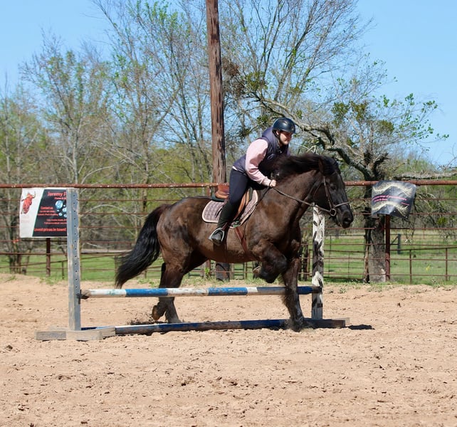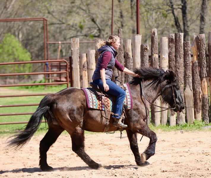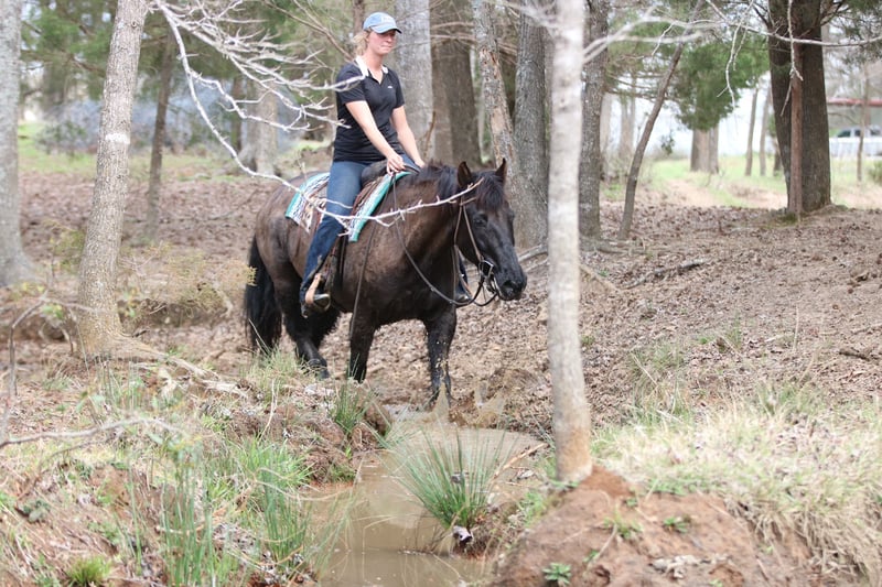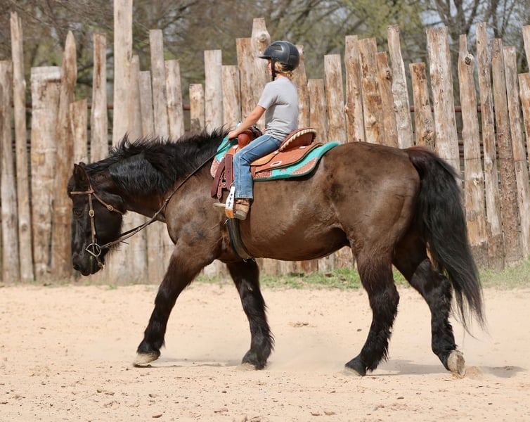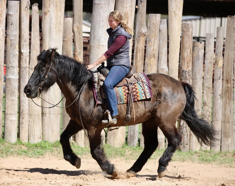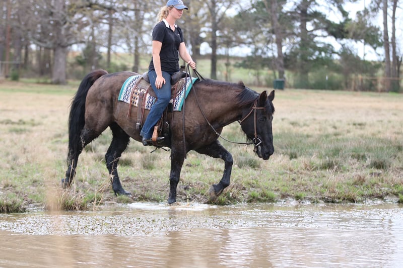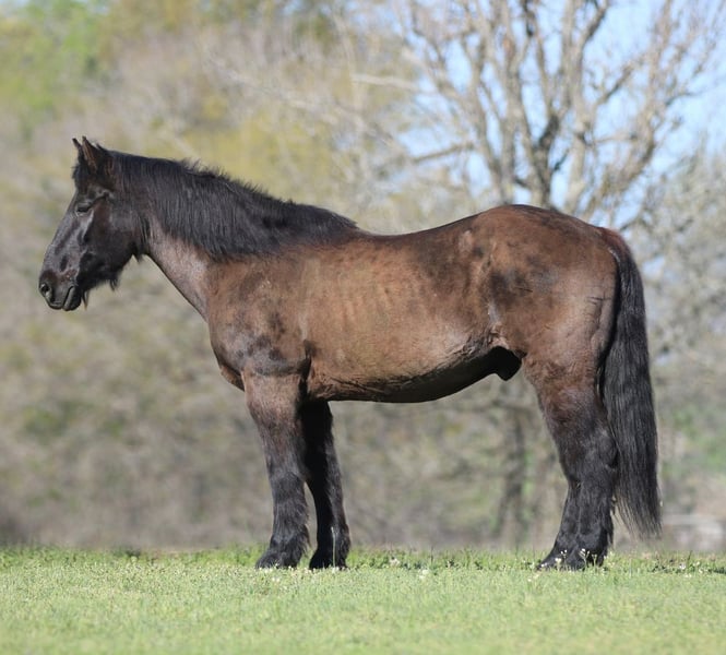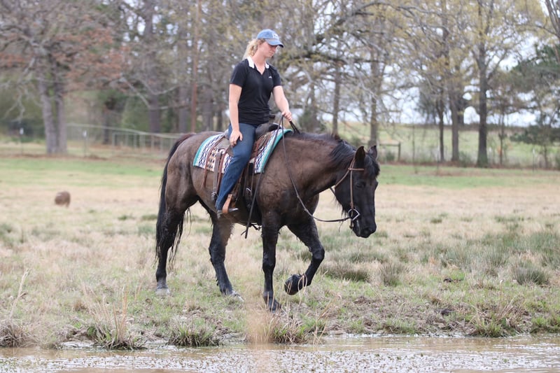 ⚜️𝓽𝓱𝓮 𝐆𝐎𝐋𝐃 𝓢𝓮𝓵𝓮𝓬𝓽⚜️ Happening now thru MONDAY | MARCH 23rd - Available EXCLUSIVELY on HorseBid's website! For more details and to register visit: www.Horsebid.com CONSIGNOR CONTACT: The Good Gelding Company 903-275-0343 LOCATION: Athens, TX BREED: Draft cross REGISTERED: Yes REGISTERED NAME: GGC Chocolate Shake COLOR: Black HEIGHT: 15.3 AGE: 14 GENDER: Gelding Chaka (short for Chocolate Shake) is a 15.3 hand black draft cross gelding, 14 years old, and built like a brick house with a size four hoof to match. He’s the type that makes you feel confident the minute you swing a leg over him. Chaka is gentle enough for any level of rider or handler. He’ll pack a kid around happily in English or western tack, and he’s the kind that takes care of his rider rather than looking for trouble. He’s a true trail horse and will go anywhere you point him without fuss. Water, rough ground, new places—it’s all just another day for him. He’s steady, level headed, and enjoyable to ride whether you’re out for a short ride or gone all afternoon. Around the barn he’s easy to have. Good for the farrier and stands quietly without needing stocks. He’s also the kind we like to put inexperienced horses next to because he’s a great babysitter and stays calm no matter what’s going on around him. Chaka is also broke to drive, but we do not have a harness to fit him and showcase this skill. If you’re looking for a big, kind, dependable horse that anyone can enjoy, Chaka is a good one to have around.