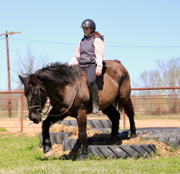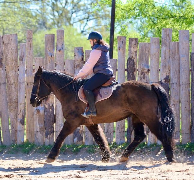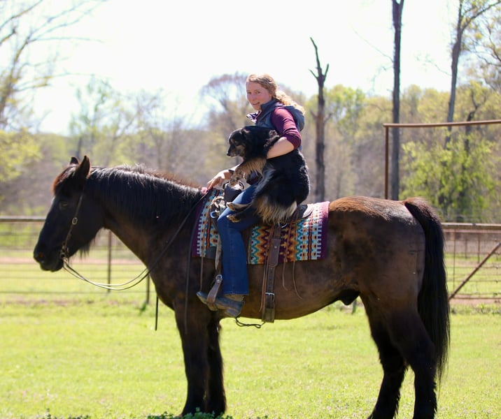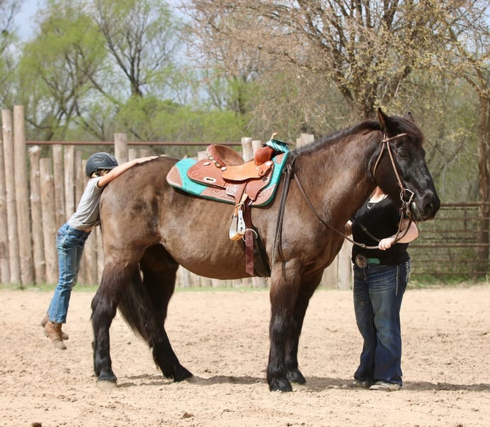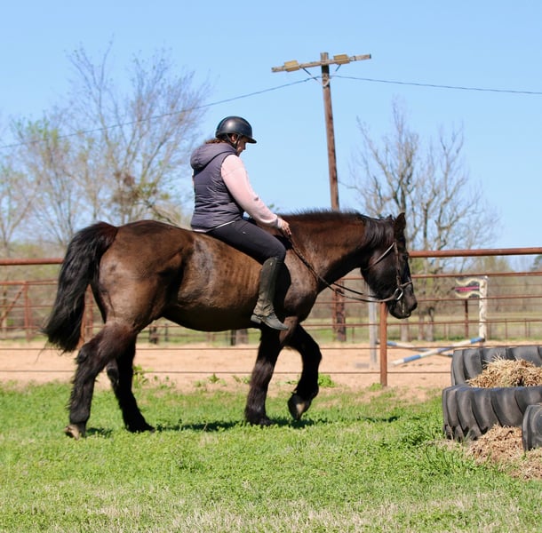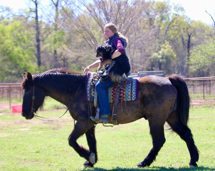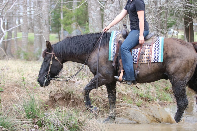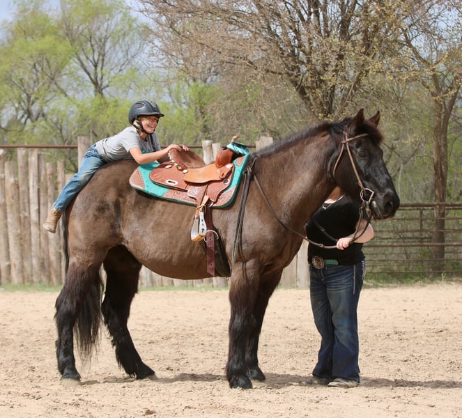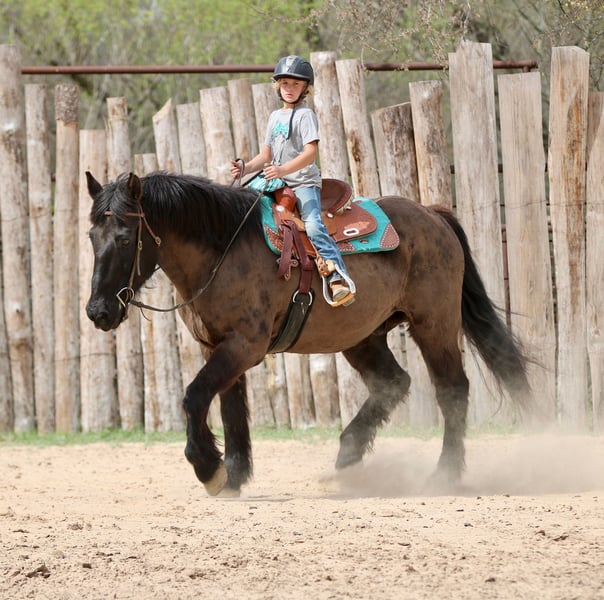 ⚜️𝓽𝓱𝓮 𝐆𝐎𝐋𝐃 𝓢𝓮𝓵𝓮𝓬𝓽⚜️ Happening now thru MONDAY | MARCH 23rd - Available EXCLUSIVELY on HorseBid's website! For more details and to register visit: www.Horsebid.com CONSIGNOR CONTACT: The Good Gelding Company 903-275-0343 LOCATION: Athens, TX BREED: Draft cross REGISTERED: Yes REGISTERED NAME: GGC Chocolate Shake COLOR: Black HEIGHT: 15.3 AGE: 14 GENDER: Gelding Chaka (short for Chocolate Shake) is a 15.3 hand black draft cross gelding, 14 years old, and built like a brick house with a size four hoof to match. He’s the type that makes you feel confident the minute you swing a leg over him. Chaka is gentle enough for any level of rider or handler. He’ll pack a kid around happily in English or western tack, and he’s the kind that takes care of his rider rather than looking for trouble. He’s a true trail horse and will go anywhere you point him without fuss. Water, rough ground, new places—it’s all just another day for him. He’s steady, level headed, and enjoyable to ride whether you’re out for a short ride or gone all afternoon. Around the barn he’s easy to have. Good for the farrier and stands quietly without needing stocks. He’s also the kind we like to put inexperienced horses next to because he’s a great babysitter and stays calm no matter what’s going on around him. Chaka is also broke to drive, but we do not have a harness to fit him and showcase this skill. If you’re looking for a big, kind, dependable horse that anyone can enjoy, Chaka is a good one to have around.