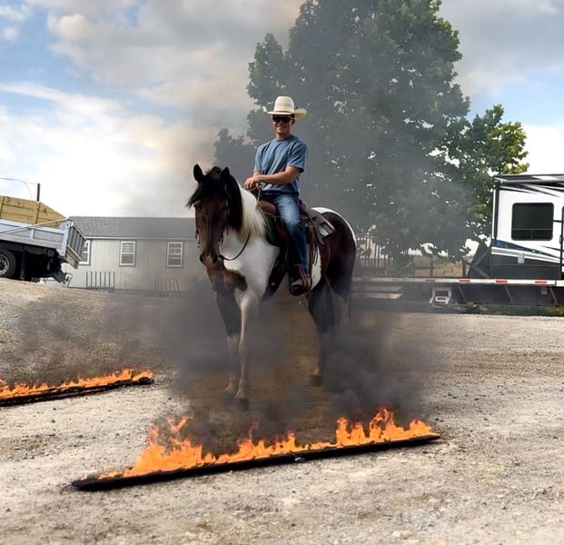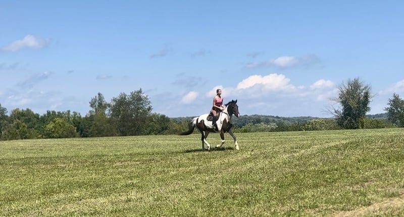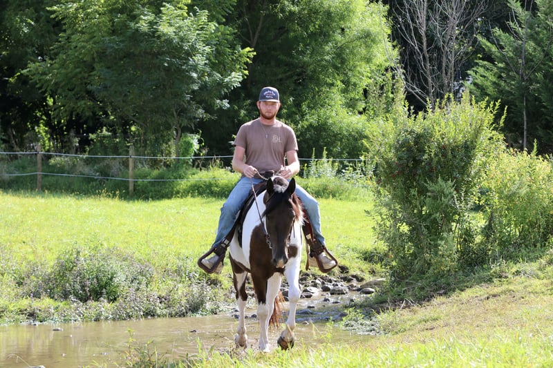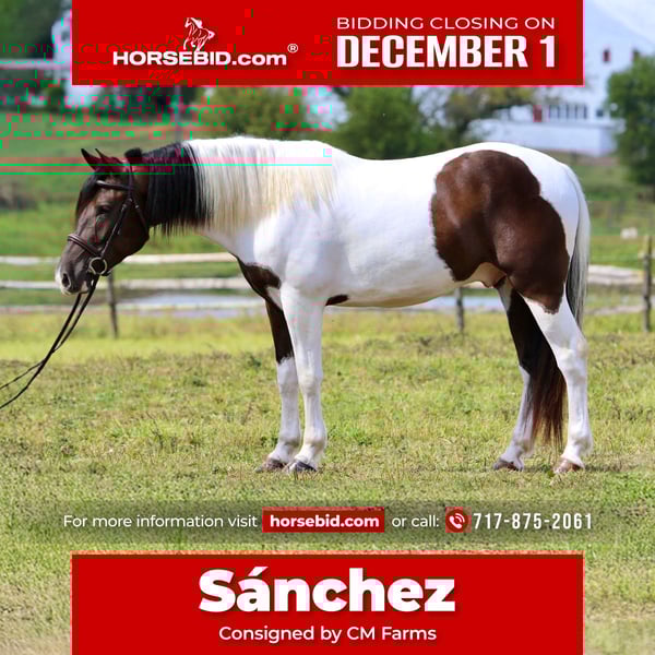 ⚜️ 𝓽𝓱𝓮 𝐇𝐨𝐫𝐬𝐞𝐦𝐚𝐧'𝐬 𝓢𝓱𝓸𝔀𝓬𝓪𝓼𝓮⚜️ Happening now thru MONDAY | DECEMBER 1st - Available EXCLUSIVELY on HorseBid's website! For more details and to register visit: www.Horsebid.com CONSIGNOR CONTACT: CM Farms 717-875-2061 LOCATION: Gap, PA BREED: Draft/Paint x REGISTERED: No COLOR: Tri Paint HEIGHT: 15.1 AGE: 4 GENDER: Gelding Meet Sánchez, a 4-year-old, 15.1–15.2hh Draft/Paint cross gelding, a.k.a. Mr. Adorable Tank on Four Legs. This compact cutie is built like a brick house and has the personality of your favorite golden retriever. He’s the kind of horse that makes you smile every time you see him — and he knows it. He’s got solid conformation, like “could survive the apocalypse” solid, but without being a skyscraper. He’s the perfect height for those of us who like our horses to be sturdy and substantial — but not so tall that you need a parachute to dismount. He takes up leg beautifully and rides both English and Western, because why limit yourself? In the arena, Sánchez is that magical combination of comfy and uncomplicated. He stands patiently to be mounted — block, ground, whatever — and once you’re on, he’s got a walk-trot-canter that feels like riding a couch made of clouds. His trot is easy to sit (yes, really), and his canter? So smooth you’ll forget about your to-do list and start planning your next trail snack. He’s got a shorter stride, which means tight circles are no problem — and you won’t feel like you’re driving a stretch limo. He’s responsive, but not reactive — just the right mix of “let’s go” and “chill out.” You don’t have to constantly nag him to move, but you can put a leg on without getting launched into space. He stops like a pro with a little seat and a “whoa,” and his brakes work better than most luxury cars. Sánchez is basically the Swiss Army knife of horses. Want to dabble in dressage? Go for it. Try some jumping? Sure. Hit a hunter pace? Absolutely. Or maybe you just want a best buddy for trail riding and barn gossip — he’s your guy. On the trail, he’s a total gem. Front, middle, back, solo — you name it. He’s been through creeks, rivers, woods, and wide-open fields like he’s auditioning for a nature documentary. He’s brave, steady, and probably more reliable than your GPS. He’s even taken beginner riders out for a spin and kept things cool, calm, and collected. He’s popped over tiny logs in the field like a saint, knees up, ears forward, and zero drama. This guy loves going new places — he’s basically the horse version of that friend who always has their bag packed for a weekend trip. Load him up, and he’s ready to go, ears perked and wondering if there will be snacks. Desensitization? Oh, he’s done it all. Fire? Check. Traffic? No problem. Tarps, balls, smoke bombs? Bring it on. While he’s not a total deadhead (he does have a brain), he’s not spooky — more curious than anything. If something startles him, he does a little blink, shrugs it off, and keeps on trucking. In the barn, Sánchez is a gentleman. He minds his manners, respects your space, and plays nicely with the other horses. He stands like a champ for grooming, tacking, and farrier visits. He picks up his feet without fuss and never turns into a pushy brat. At first, he might seem a little stoic — like a mysterious cowboy in a movie — but give him a minute, and suddenly he’s your best friend, rooting through your pockets for peppermints like a seasoned treat detective. We truly love this young guy and believe his future is super bright. That said, he is still young and learning, so he probably isn’t ideal for a complete beginner unless they’re working with a trainer who can help guide him on his path to world domination — er, success. We want a home for him where he’ll be appreciated, loved, and maybe occasionally spoiled with cookies. Because let’s be honest — this horse is kind of amazing.
