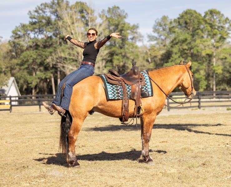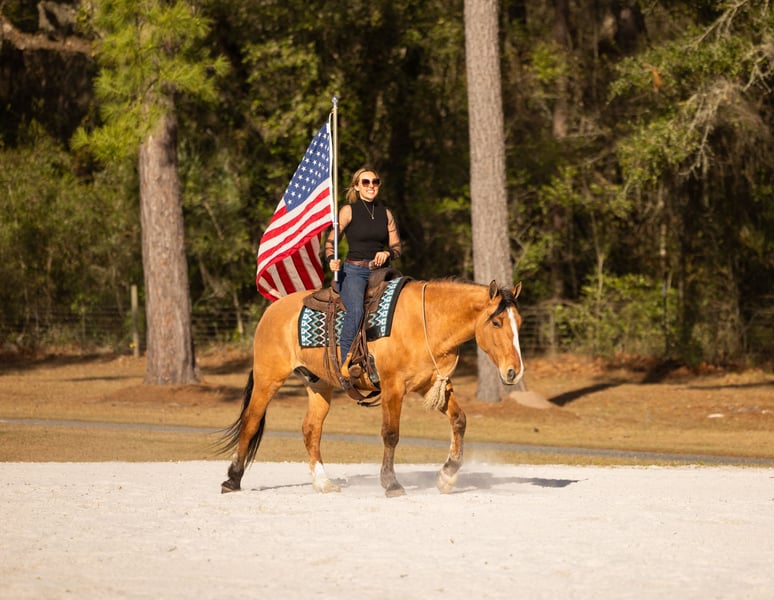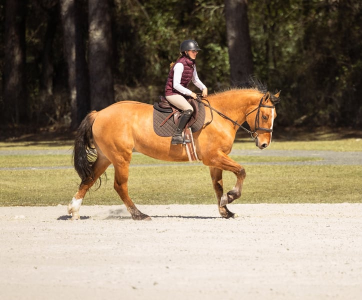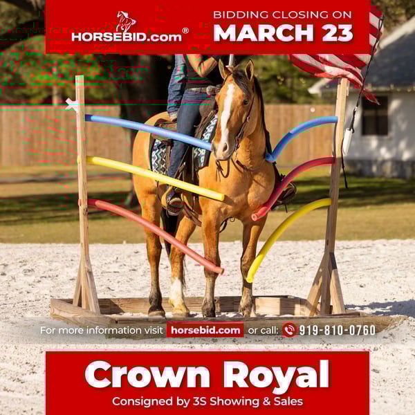⚜️𝓽𝓱𝓮 𝐆𝐎𝐋𝐃 𝓢𝓮𝓵𝓮𝓬𝓽⚜️ Happening now thru MONDAY | MARCH 23rd - Available EXCLUSIVELY on HorseBid's website! For more details and to register visit: www.Horsebid.com CONSIGNOR CONTACT: 3S Showing & Sales 919-810-0760 LOCATION: Ocala, FL BREED: Draft cross REGISTERED: No REGISTERED NAME: Crown Royal COLOR: Dun HEIGHT: 15.3 AGE: 4 GENDER: Gelding Crown Royal is a 4 year old, 15.3 HH draft cross with the kind of mind and disposition families dream about. He is by a Gurrola bred Quarter Horse stud and out of a Morgan × Belgian mare, giving him the best qualities of each breed. The Quarter Horse contributes trainability and athleticism, the Morgan adds heart and versatility, and the Belgian brings strength, bone, and that naturally calm draft disposition. The result is a horse with the perfect blend of brains, comfort, and reliability. He is a striking gelding with a gorgeous dun dorsal stripe down his back and the kindest expression to match his personality. From the moment he was born, Crown Royal was surrounded by children — truly redefining the phrase “born broke.” He grew up with kids climbing on him, brushing him, and learning around him, and because of that upbringing, his patience and kindness shine through in everything he does. He genuinely enjoys people and especially has a soft spot for kids and timid riders. He is the type of horse that builds confidence rather than taking it away — the kind families search for but rarely find. I had the pleasure of offering his full brother, Captain, last year, and this family continues to impress in every way. Crown Royal is the last full brother that will ever be available, making him a rare opportunity to own one from this exceptional cross. Crown Royal has been extensively exposed to “real world” situations and is a true all-around horse. He has been ridden on large cross country course where he confidently jumped logs, ditches, banks and went through water. He has also been ridden double, triple, and even backwards. He has completed obstacle courses including teeter-totter bridges, pool noodles, traffic obstacles, and more. He has been around cattle, helped gather longhorns, and has been ridden comfortably through town, around loud semi-trucks, heavy traffic, construction noise, and busy environments. We’ve even ridden him to coffee shops and local food stands — and yes, we have even gone fishing on him. Under saddle, Crown Royal rides both Western and English and has done dressage work. He moves nicely off the leg, collects, and easily transitions into an extended trot or canter. He has exceptionally smooth gaits with a fantastic jog, an easy rhythmic trot, and a soft, comfortable canter that is perfect for beginner riders — especially kids learning to canter. For riders who need a little extra help mounting, Crown Royal is trained to come to the mounting block and will also lay down on cue. He is naturally more whoa than go, but he is not lazy-he is just quiet, steady, and responsive. Crown Royal truly is a certified all-around gelding. Whether you want to enjoy hunters, lower-level jumping, dressage, fox hunting, ranch riding, trail riding, or simply have a safe and enjoyable pleasure mount, his versatility and ultra safe mentality sets him apart. With his mind, bravery, and extensive exposure, he is the ultimate beginner friendly horse that I trust completely. On the ground, he is just as easy as he is under saddle. He loads, ties, and cross ties quietly, stands politely for grooming, and is excellent to handle. He is an easy keeper, currently wears front shoes only, and turns out happily in a mixed herd. Leave him in the stall for a few days and pull him out — you will have the exact same horse. Crown Royal has been on overnight camping trips where he confidently crossed deep water, climbed rocky hills, and explored miles of trails from Wyoming to Florida, always carrying our little riders safely along the way. He is incredibly sure footed, calm, and dependable wherever the trail leads. And in true family horse fashion — one of our little riders has even hopped on him bareback in the dark to go meet the pizza delivery driver. 🍕 That’s just the kind of horse he is. ✨ Ladies — enjoy your English ride, then throw your husband on him in a Western saddle and head down the trail. He truly does it all. And yes… he is a real-life couch to sit on. ✨ Crown Royal easily falls into our “elite” category of horses. If you’re searching for one of the safest geldings you can find — from the tiniest riders to the “golden aged” riders — Crown Royal would be my first choice. UTD on Coggins, vaccines, and health certificate. Trials at our farm are welcome, and we can arrange shipping anywhere with our in-house shipper, making the buying process easy and seamless for out-of-state buyers. Crown Royal truly checks every box — and then some.