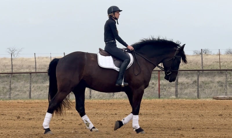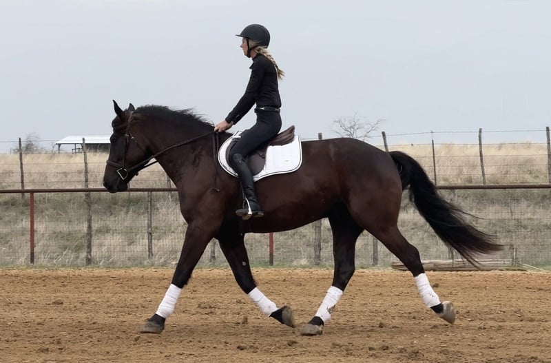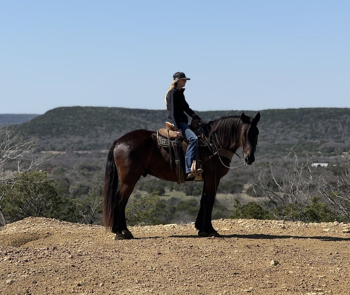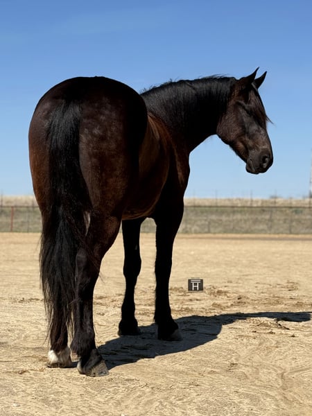 ⚜️𝓽𝓱𝓮 𝐆𝐎𝐋𝐃 𝓢𝓮𝓵𝓮𝓬𝓽⚜️ Happening now thru MONDAY | MARCH 23rd - Available EXCLUSIVELY on HorseBid's website! For more details and to register visit: www.Horsebid.com CONSIGNOR CONTACT: Holland Horse Company 559-978-6320 LOCATION: Weatherford, TX BREED: Draft Cross REGISTERED: No COLOR: Black HEIGHT: 16 AGE: 4 GENDER: Gelding Wellington is a flashy 4-year-old draft cross gelding standing a solid 16 hands tall. He is a wonderful blend of athleticism and quiet, gentle disposition, making him an enjoyable and versatile horse to have around. Wellington has been exposed to a variety of experiences including driving down the streets, trail riding, and popping over small fences, and he handles it all with a calm and willing attitude. Wellington is extremely good-minded and eager to please. Show him something once and he quickly takes it in stride like a seasoned horse. He has a kind, personable nature and is a pleasure to work with. He is easy to catch, enjoys attention, and gets along well with other horses in the pasture. Outside, Wellington truly shines. He is confident, sure-footed, and comfortable in a variety of environments. He rides out quietly alone or with a group and is happy to lead or follow. He has been exposed to wildlife and new surroundings and handles new situations with a steady, level-headed approach. Under saddle, Wellington has a solid foundation. He has a nice neck rein, moves willingly off leg pressure, has a big stop, and will lope off easily with just a kiss. He is the same dependable horse every time you saddle him up and is straightforward and enjoyable to ride. On the ground, Wellington has excellent manners. He stands quietly tied, is good to handle, good with his feet, and hauls well. He is up to date on all care, sound, and straight-legged. For more information, call or text Chanel with Holland Horse Company at 559-978-6320. We are happy to answer any questions and assist with arranging shipping if needed.