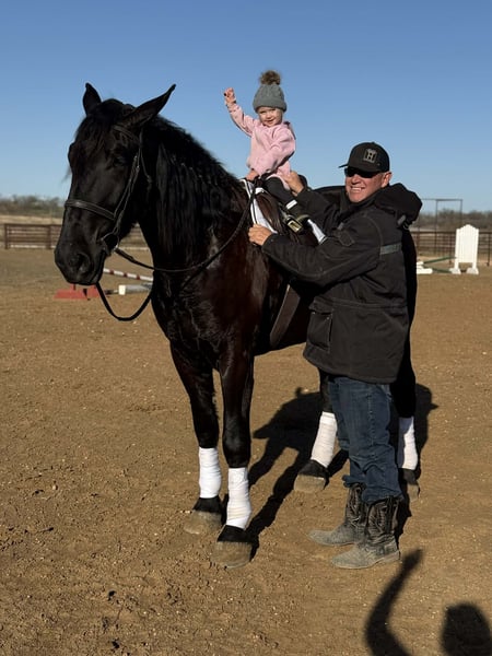 ONLINE-AUKTION Bieten Sie jetzt auf www.PlatinumEquineAuction.com Startgebot: 3.500 USD Auktionsende: 28. Dezember 2025 Sie brauchen ein neues Sattel? Schauen Sie auf unserer Website oder Facebook-Seite bei White Rock Saddles vorbei. Smoke ist ein großer, freundlicher und ruhiger, fast vierjähriger Percheron-Geländewagen-Wallach mit einer Stockmaß von 17,1 hh. Er ist ein äußerst williger und liebenswerter Junghengst mit großem Potenzial. Smoke ist sowohl im Einzel- als auch im Doppelgespann fahrbar, unter englischem Reiterzeug ausgebildet und eignet sich hervorragend für Trails. Im Dressurviereck ist Smoke in beiden Disziplinen gut eingearbeitet, mit flüssigen Übergängen. Er wurde bereits über Bodenstangen und kleine Kreuzhindernisse geritten. Er ist sensibel, leicht zu reiten und lernt sehr schnell. Draußen zeigt Smoke eine erfahrene, gelassene Mentalität. Er ist selbstbewusst und folgt jeder Anweisung, wohin Sie ihn führen. Er kann an der Spitze oder im Feld mitlaufen und passt sein Tempo an. Am Boden ist Smoke freundlich und anhänglich. Er ist leicht zu fangen und genießt Aufmerksamkeit. Er ist sowohl im Einzel- als auch im Doppelgespann fahrbar. Er ist vom Boden aus an seinen Halbbruder Coal gewöhnt, der ebenfalls zum Verkauf steht, falls Sie beide als Team erwerben möchten. Smoke ist gesund, gerade im Körperbau, mit sauberen Beinen. Er ist aktuell, gut beim Hufschmied, verträgt sich gut mit anderen Pferden auf der Weide oder kann auch alleine im Paddock gehalten werden – stets ruhig und freundlich. Bei Interesse rufen Sie bitte Chanel von Holland Horse Company unter 559-978-6320 an oder schreiben Sie eine Nachricht. Standort: Jacksboro, Texas.