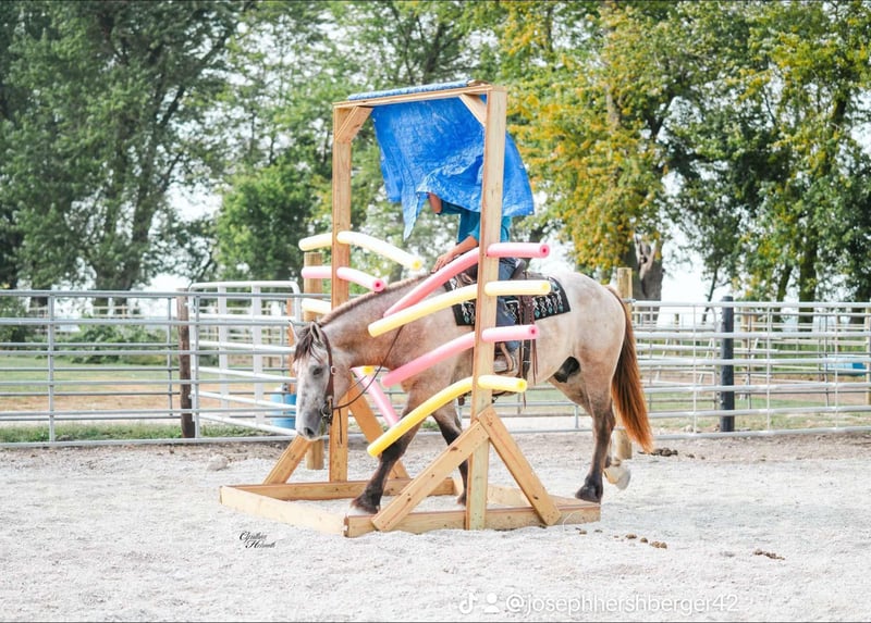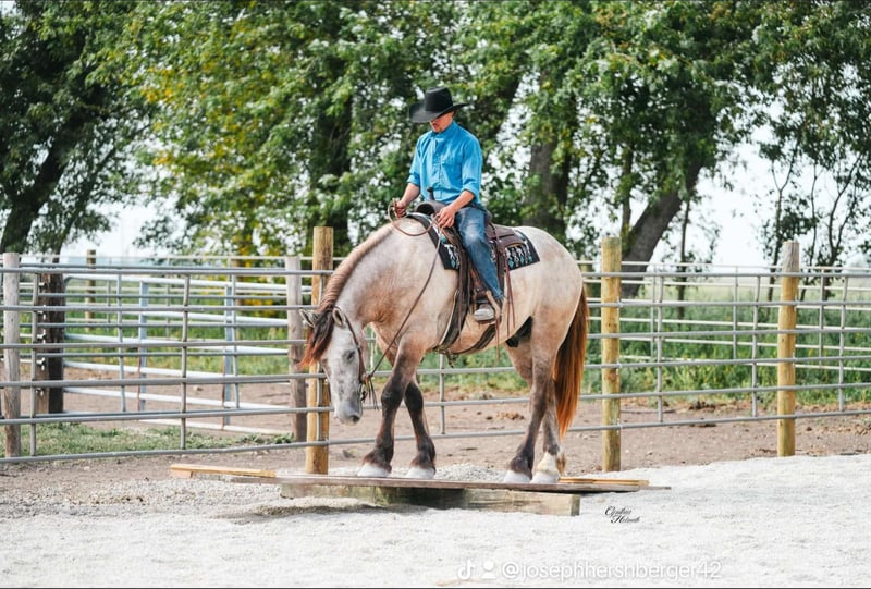 🎲𝓽𝓱𝓮 𝐑𝐈𝐃𝐄𝐑'𝐒 𝓒𝓱𝓸𝓲𝓬𝓮🎲 Happening now thru MONDAY | NOVEMBER 17th - Available EXCLUSIVELY on HorseBid's website! For more details and to register visit: www.Horsebid.com CONSIGNOR CONTACT: Platinum Star Stables 260-977-9095 LOCATION: Independence, Iowa BREED: Draft Cross REGISTERED: No COLOR: Grulla Roan HEIGHT: 17 AGE: 4 GENDER: Gelding Badger is a stout built, 16.1hh, just turning 5 year old, grey draftcross gelding. He has been ridden every where that you could ask one to go… Lots of outside miles, down the trails, across the creeks, ditches, deadfall… he does it all! He handles any obstacles that are in his way, is safe to ride down the highways and through town as well. He rides well in the arena and does fine in a group as well as alone. He neckreins around nice, takes his leads, lopes nice circles and has a good stop. Badger is a great size that will fit any level of rider, right down to the youngest ones yet he is stout enough to carry any adult. He is the friendliest horse that you will ever meet and loves attention. He is farrier friendly, he tacks up quietly and walks right off when asked after he is mounted. He has been around lots of kids and loves attention and is easy to catch as well. He absolutely does not buck, bite or kick as he is totally safe and well trained. In addtion to riding Badger also drives very well, whether in the field, down the highways or through town. Badger is blemish free, has had all of his shots, and has been dewormed. He sells 100% sound and sane. We invite anyone to come see and ride him in person so they can understand how truly awesome that he is! Located in Independence, IA. Contact Ervin with Platinum Star Stables 260-977-9095 with any questions.