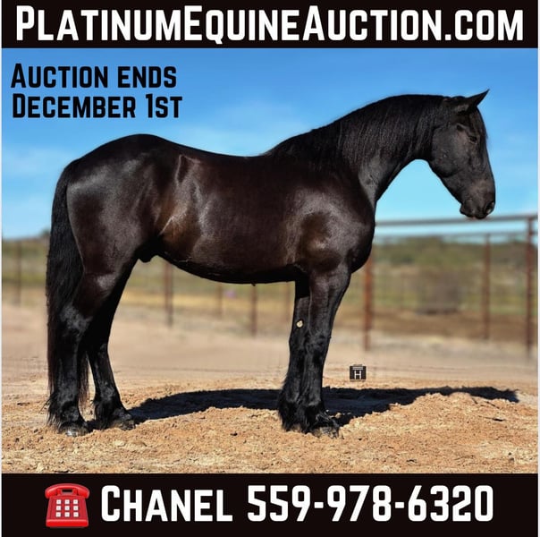 ONLINE AUCTION Place your bids at www.PlatinumEquineAuction.com Starting Bid $3500 Auction ends December 1st, 2024 Need a new saddle? Check out White Rock Saddles on our website or Facebook! Dracula is a 2021 Draft Cross gelding standing 15.2 hands tall. He is the kindest soul with the softest eye and most willing demeanor. Dracula has been well started in both English and Western and is broke to drive as well. Dracula has seen the roads, towns, trails, ranch and arena. We have lightly started him over small jumps and he shows a lot of potential! He is forward moving while still having great downward transitions and a nice stop. He will go anywhere you ask him to and do anything you ask him to do. He is great to take out alone, pastures well with others, and has excellent ground manners. Dracula is a sweet boy who is ready to finish out in whichever direction you choose. He is fun and fancy Western and elegant and flashy English. We have nothing but good things to say about him. Good with his feet. Sound and clean legged. UTD. FMI call/text Chanel at Holland Horse Company 559-978-6320. We are happy to answer questions and help arrange shipping nationwide from Jacksboro, TX! ONLINE AUCTION Place your bids at www.PlatinumEquineAuction.com Starting Bid $3500 Auction ends December 1st, 2024 Need a new saddle? Check out White Rock Saddles on our website or Facebook!