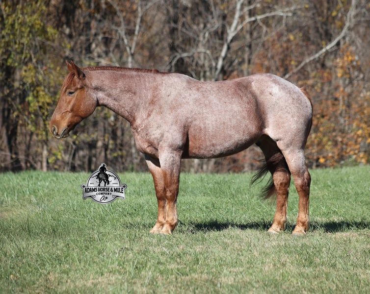 𝐀𝐝𝐚𝐦'𝐬 𝐇𝐨𝐫𝐬𝐞 & 𝐌𝐮𝐥𝐞 𝐂𝐨𝐦𝐩𝐚𝐧𝐲'𝐬 ✷𝑬𝒗𝒆𝒓𝒚 𝑴𝒊𝒍𝒆 𝑨 𝑴𝒆𝒎𝒐𝒓𝒚✷ 𝐄𝐗𝐂𝐋𝐔𝐒𝐈𝐕𝐄 𝐒𝐀𝐋𝐄 Happening now thru MONDAY | FEBRUARY 2nd - Available EXCLUSIVELY on HorseBid's website! For more details and to register visit: www.Horsebid.com CONSIGNOR CONTACT: Adams Horse and Mule Company 606-308-2461 LOCATION: Mt. Vernon, KY BREED: Draft Cross REGISTERED: No COLOR: Red Roan HEIGHT: 16.1 AGE: 5 GENDER: Gelding Grady is a beautiful true red roan and he will build your confidence levels!!! He is a 16.1h, 5 years old, draft cross Gelding! He is a big stout built guy but he is light on his feet, lopes around as soft and easy as a 14h horse, takes the correct leads, lopes nice circles, reins around and stops with ease! He is totally safe for any age and any level of rider and has been ridden by our 6 year old. He has been ridden inside and out. Grady loves attention and is as friendly as they come plus he is very calm natured! He has been ridden down the highways and he is traffic safe. He is great on trails and he will cross creeks, ditches, logs and navigate rough rocky areas. He has been exposed to all kinds of wildlife such as deer or turkey and will go anywhere that he is asked too. He has been ridden many miles in the mountains of Eastern Kentucky and encountered every obstacle possible on the trail. He has been on several week-long camping trips. He hauls well and picketline ties also. He will go up or down even the steepest slopes, across deep creeks, over downed trees, and over all types of rough terrain while still being sure footed. He has been ridden around the ranch to check cattle, ride fences and used at brandings to drag calves. Grady has been started jumping over rails and logs as well. If you want one that the whole family will love or years to come, Grady is the total package! Feel free to call Eric 606-308-2461 with any questions.