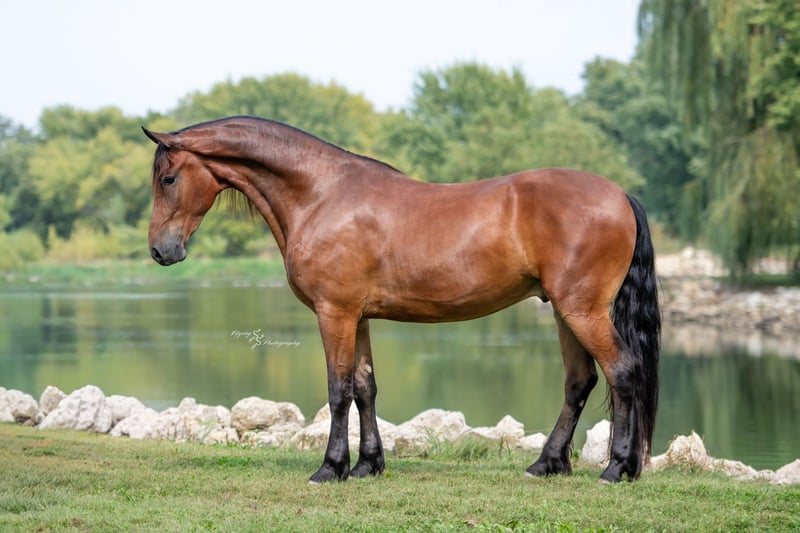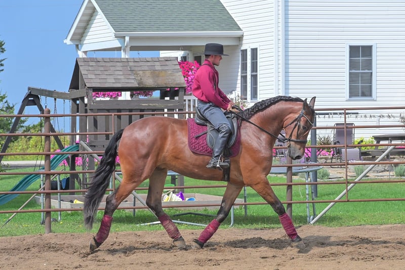 ONLINE-AUKTION Bieten Sie jetzt auf www.PlatinumEquineAuction.com Startgebot: 3.500 USD Auktion endet am 2. November 2025 Benötigen Sie ein neues Sattel? Schauen Sie auf unserer Website oder Facebook-Seite bei White Rock Saddles vorbei. Ein Blick auf Donald genügt, um alle Gründe zu bestätigen, warum Friesianer als königliche Pferde bekannt sind. Er verkörpert Eleganz gepaart mit Leistungsbereitschaft. Donald ist ein 4-jähriger, im FBHR registrierter Friesian-Mix-Wallach, der 1,65 m groß ist, Schuhgröße 3 trägt und etwa 635 kg wiegt. Er ist ein herausragender Turnierkandidat mit großem Potenzial, sich in englischen Disziplinen zu profilieren. Donald wurde an Trails, Hindernissen im Reitplatz und sogar im Trubel eines kleinen Städtchens gewöhnt. Er ist vollständig desensibilisiert und bereit, in seiner Ausbildung weiter voranzuschreiten. Donald ist im Dressurtraining, zeigt bereits viel natürliches Talent und ist so schön im Bewegung, dass selbst unerfahrene Reiter die rohe Fähigkeit erkennen können. Er wurde ausgiebig in Englisch- und Westernsattel geritten und besitzt eine solide Basis in beiden Disziplinen. Wir sind überzeugt, dass dies ihn vielseitiger und besser für seinen nächsten Reitpartner macht. Er ist ein sehr vorwärts gerichteter Bewegungsablauf mit einem beeindruckenden Trab im Extended. Wir empfehlen ihn für Reiter mit mittleren bis fortgeschrittenen Kenntnissen oder für Reiter, die mit einem Trainer zusammenarbeiten. Auch ein Anfänger im Erwachsenenalter könnte ihn, mit Trainerhilfe, gut reiten. Donald ist von Zebb M, einem reinrassigen Friesianer-Hengst, abstammend, und stammt aus einer Sportpferdestute, die zu 50 % Friesianer ist, was ihn zu 75 % Friesianer macht. Egal, ob Sie Englisch- oder Western-Disziplin bevorzugen, wir sind überzeugt, dass Donald in Dressur oder Western Dressur glänzen wird. Mit weiterer Ausbildung ist er auch in Springen, Vielseitigkeit oder Reitkunst sehr wettbewerbsfähig. Er ist verkehrssicher und lässt sich von den Ablenkungen in einer kleinen Stadt nicht aus der Ruhe bringen. Wasser überquert er ohne Zögern, geht elegant über Baumstämme im Trail oder über umgestürztes Holz im Gelände. Er wurde im Umgang mit Groß- und Kleintieren sowie Geflügel geritten und hat auch Erfahrungen mit Wildtieren auf Feldern und Trails. Im Reitplatz wurde Donald sowohl in Indoor- als auch Outdoor-Arenen geritten und zeigt dabei stets Selbstvertrauen. Seine Beweglichkeit ist beeindruckend, und er passt sich verschiedenen Bodenarten mühelos an. Sie können bei jedem Reiten auf gleichbleibende Leistung vertrauen, da Donald auch bei längerer Pause zuverlässig ist. Er ist ehrlich und zeigt kein Buckeln oder Hüpfen, selbst wenn er frisch ist. Er ist gut erzogen und benimmt sich vorbildlich, egal ob er auf der Koppel oder im Stall steht. Im Offenstall kommt er gut mit den Artgenossen aus und lässt sich leicht einfangen. Donald steht ruhig angebunden, an Kreuzketten, ist ein Gentleman beim Hufschmied und Tierarzt, lässt sich problemlos häckseln, ist perfekt zum Braiden und steht ruhig beim Aufsatteln, für Polo-Würfe und beim Aufstieg. Gerne stehe ich für ein Gespräch mit Ihnen oder Ihrem Trainer zur Verfügung, um sicherzustellen, dass Donald perfekt zu Ihnen passt. Er wird mit einem aktuellen negativen Coggins-Test sowie einer Vor-Kauf-Untersuchung meines Tierarztes verkauft. Wenn Sie Donald kennenlernen möchten oder vor Ende der Auktion Fragen haben, rufen Sie bitte Edwin Raber unter 319-283-0616 an. Standort: Fairbank, Iowa.