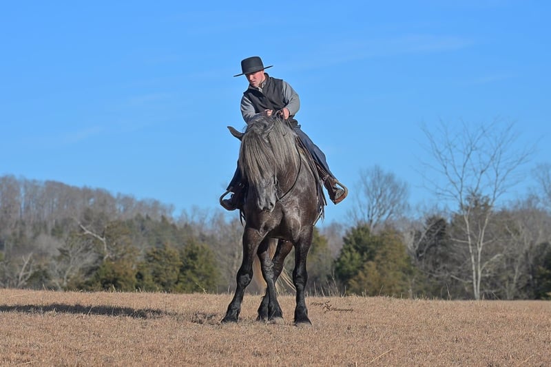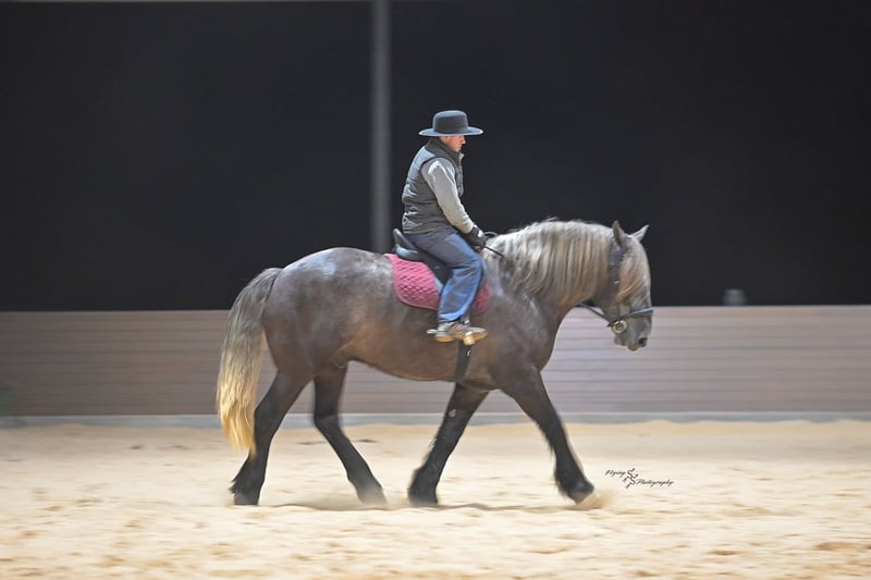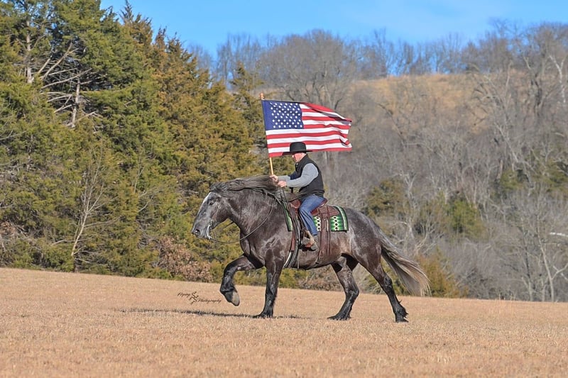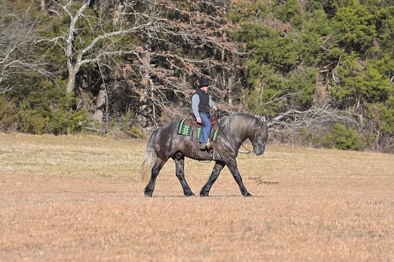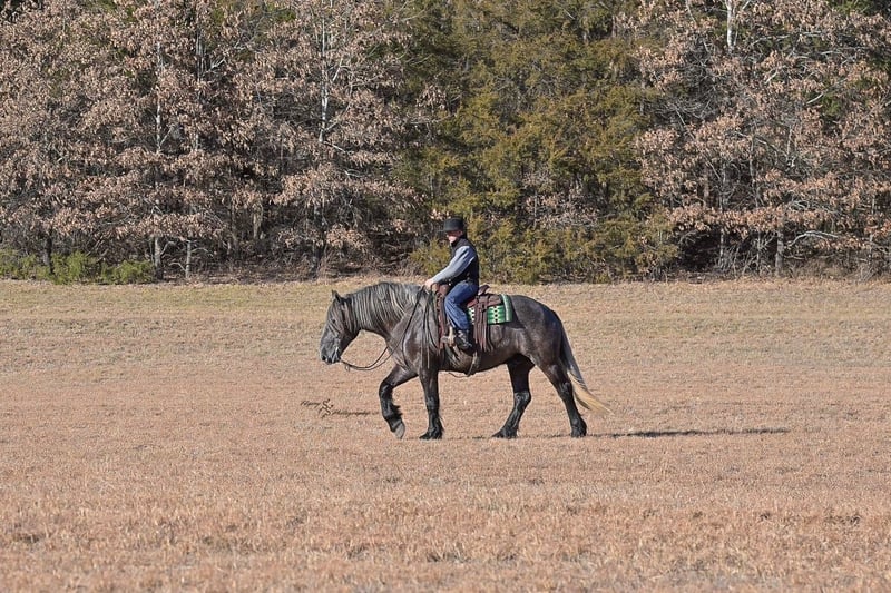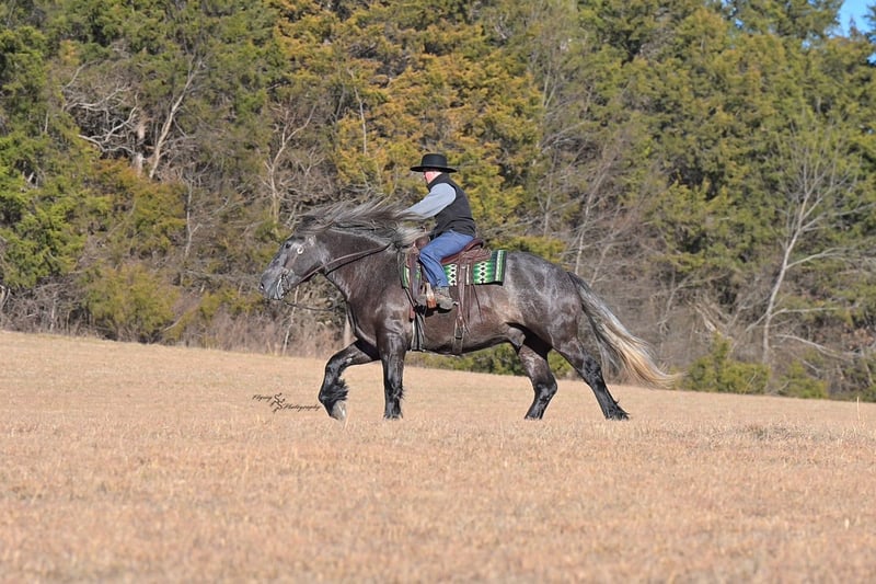 "AVAILABLE ON ONLINE HORSE AUCTION AT www DOT PlatinumEquineAuction DOT com BIDDING OPEN NOW thru SUNDAY | APRIL 12TH! *Final price will be determined on auction site* CONSIGNOR CONTACT INFO: Edwin Raber 319-283-0616 LOCATION: Fairbank, IA Keystone is the definition of a gentle giant and is the perfect gentleman whether his rider is big or small. He is a 5 year old draft cross gelding that stands a solid 16.2h, weighing in at 1500 lbs, and wearing a #6 draft shoe. He is honest and genuine in his ride, taking care of an inexperienced or a young rider as they stroll down the trails. Keystone is a jack of all trades; he rides Western, English, bareback, bridleless, and even drives! You can expect him to be a seasoned trail or arena mount, even with time off, he picks things up right where you left off. He is a pleasure to be around on the ground, under saddle, or under harness. Keystone will go wherever he is pointed down the trails, where he easily crosses downed timber, walks quietly through the rivers, and handles rugged terrain with ease. He is accustomed to all wildlife as well, whether he comes across a flying pheasant in Iowa, or a speedy road runner in Arkansas; Keystone has seen it all! Whether you are out on the trails or in the arena, he stands patiently at a mounting block or will even stand next to a rock or log to be mounted. He is truly a horse that an entire family can enjoy, and is so versatile. He has a personality that everyone loves, as he enjoys all of the attention. He is personable with everyone and doesn't know a stranger. You will notice in his photos and video that he has a true double mane, falling thick and even on both sides of his neck! He is truly one of a kind. Keystone has put up with a lot from me as you will see in the video, always keeping a level head and the utmost patience. He stands quietly with side-by-sides doing donuts around him, and even entertains attention from a 7.5ft T-Rex on the ground and under saddle. He handles new things like a seasoned pro, and it's one of our favorite things about him. Keystone picks up his leads correctly on cue, lopes beautiful circles in a field or in the arena. He does everything that is asked of him without hesitation. Even with new riders on his back, he is always aiming to please. For a crossbred gelding, there isn't much that Keystone hasn't done, or hasn't been exposed to. He is extremely well rounded and versatile, making him a great fit for so many riders and families. All of our video was taken while on vacation in Arkansas, a brand-new place to him. Though it is not in the video, we want to emphasize how well he drives and how well he handles riding through the busy streets of our small town. Keystone is traffic safe, and handles a busy environment very well. He is not a stranger to trail obstacles; and enjoys all of the horseplay with the tarps, balls, and anything else the kids can think of. Keystone loads and hauls very well, he is a gentleman for the farrier and the veterinarian, bathes well, and stands quietly to be groomed and tacked up. He is used to being around farm equipment and all types of farm animals from small pets to poultry. He is easy to catch and happy whether he is stalled or turned out, and gets along well with others in a pasture setting. Radiographs or a pre-purchase exam can be arranged (at buyers expense). If you have any questions or would like to meet Keystone prior to the auction ending, please CALL Edwin at 319-283-0616.