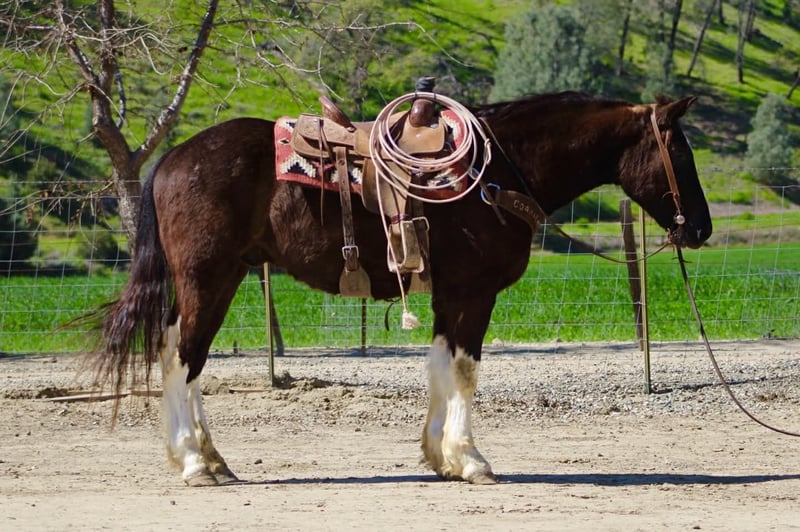 "AVAILABLE ON ONLINE HORSE AUCTION AT www DOT PlatinumEquineAuction DOT com BIDDING OPEN NOW thru SUNDAY | MARCH 22ND! *Final price will be determined on auction site* CONSIGNOR CONTACT INFO: Longhorn Ranch 831-537-1915 LOCATION: Paicines, CA Meet Mater, BIG, KIND, AND BUILT TO LAST — MATER IS THE KIND YOU DON’T COME ACROSS TWICE a striking black and white Paint Draft Cross gelding standing a full 16 hands tall with four high white socks and a splash of white across his belly that makes him easy to spot anywhere. He has the kind of presence that turns heads, but it’s his kind nature and easygoing attitude that truly set him apart. Mater is the definition of a gentle giant. He is quiet, safe, and genuinely enjoys getting out and going places. The type of horse that makes riding fun whether you are a beginner learning the ropes or an experienced rider who appreciates a dependable partner. Around the barn Mater is exactly the kind you want. He ties quietly, clips, hauls well, and stands patiently for the farrier. He has excellent ground manners and is simply easy to be around. Under saddle he rides around with confidence and balance. In the arena he lopes nice correct circles, has a good stop with a smooth slide, and performs a simple turnaround. He stays relaxed and willing, making him comfortable and enjoyable for a wide range of riders. Outside the arena is where Mater really shines. He has been used to gather cattle, ride through creeks and ponds, and navigate obstacles with ease. Trails, rough country, water crossings, and new places are all taken in stride. Point him in a direction and he is happy to go. With his size, athletic ability, and wonderful mind, Mater could go many directions. He would make an excellent trail partner, ranch horse, English prospect, light jumping prospect, or simply a dependable horse to enjoy cruising the countryside. At coming five years old, Mater has his whole future ahead of him and the kind of foundation that makes him exciting for years to come. Draft crosses with this combination of size, disposition, and rideability are hard to find. Mater truly is one of the coolest horses we’ve had the pleasure of offering. Safe, kind, broke, and built to be your next great partner — Mater checks all the right boxes. Located in Paicines, California Contact: Dina – Longhorn Ranch (831) 537-1915 Nationwide shipping available. We are happy to assist in arranging reliable transportation anywhere in the United States or Canada. Veterinary exams and PPEs are always welcome at the buyer’s expense. Mater is proudly offered by Longhorn Ranch.
