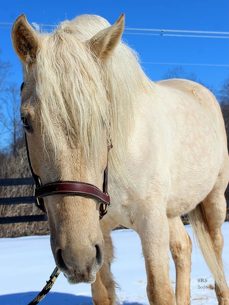 Mellow is a spectacular and rare cream-colored 6 year old draft