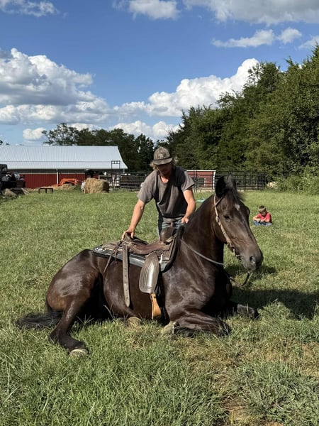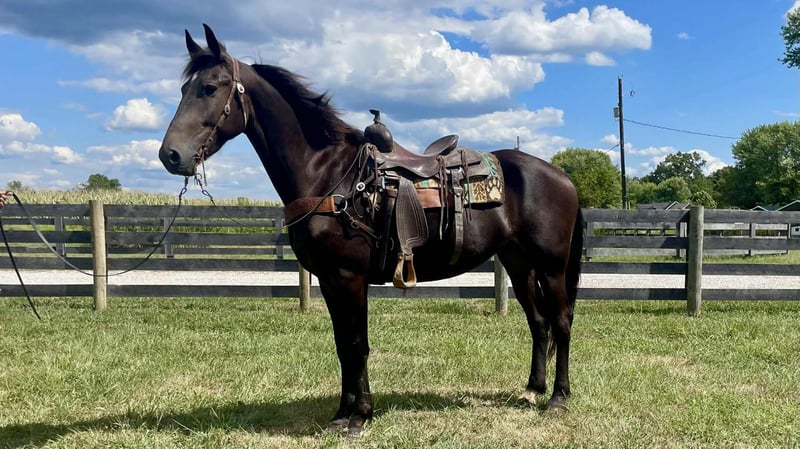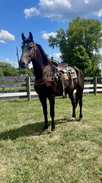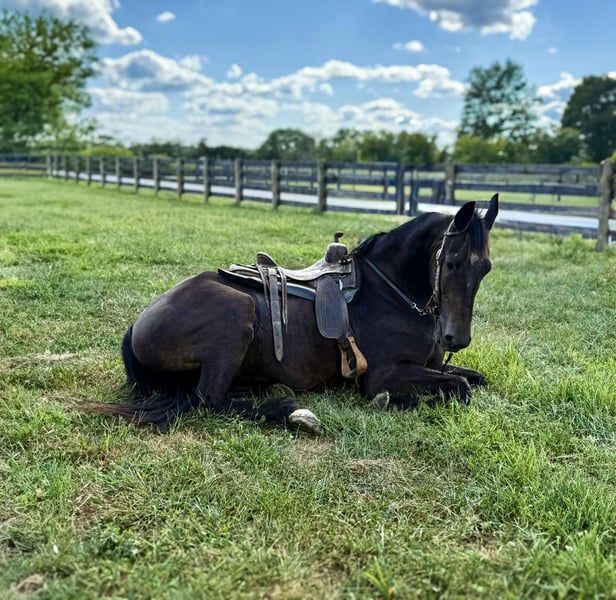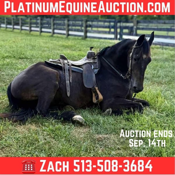 ONLINE AUCTION Place your bids at www.PlatinumEquineAuction.com Starting Bid $3500 Auction ends September 14th, 2025 Need a new saddle? Check out White Rock Saddles on our website or Facebook Titan is a handsome 16.3 hand, 5 year old friesian / Morgan cross gelding. Titan is a 1 owner horse and is absolutely gentle. This horse is not only big in size but big in heart as well. He absolutely loves people and will follow you around at liberty. Titan can go months with out being ridden and still be the same horse when the time comes to ride. He has had years of training and it absolutely shows. He has an awesome collected lope, neck reins and backs up with ease. He is phenomenal on the trail, no spook, is super self confident and is sure footed in every step he takes, Titian has been train to bow, lay down and sit on command, on top of his impressive riding skills Titian is always broke to drive in a cart. He is traffic safe and ALWAYS aims to please. Call Zach Brandenburg for additional information 513-508-3684 Moscow, OH. ONLINE AUCTION Place your bids at www.PlatinumEquineAuction.com Starting Bid $3500 Auction ends September 14th, 2025 Need a new saddle? Check out White Rock Saddles on our website or Facebook
