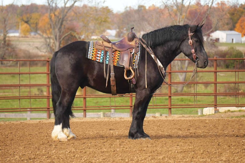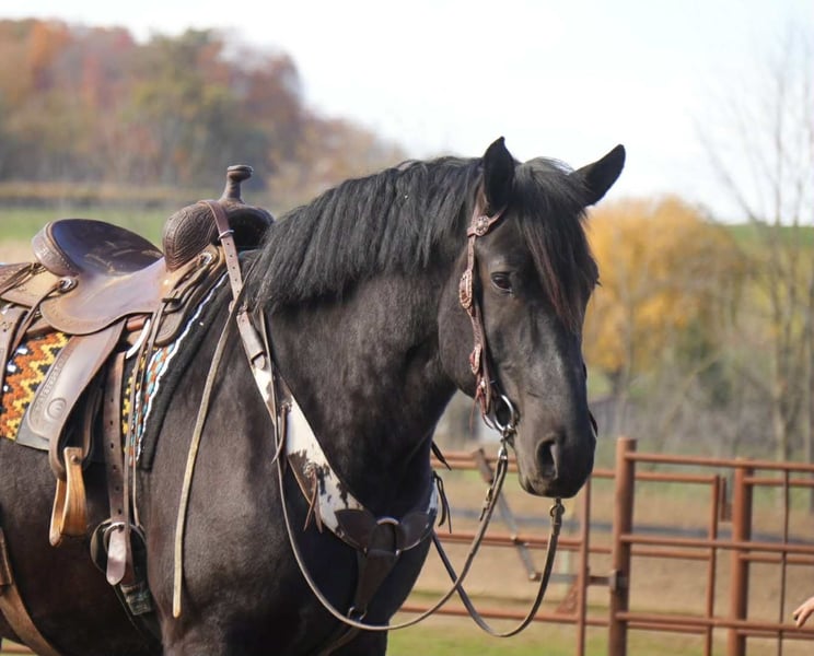🎲𝓽𝓱𝓮 𝐑𝐈𝐃𝐄𝐑'𝐒 𝓒𝓱𝓸𝓲𝓬𝓮🎲 Happening now thru MONDAY | NOVEMBER 17th - Available EXCLUSIVELY on HorseBid's website! For more details and to register visit: www.Horsebid.com CONSIGNOR CONTACT: MW Equine Stables LLC 330-365-0236 LOCATION: Fresno, OH BREED: Draft Gypsy Cross REGISTERED: No REGISTERED NAME: COLOR: Black HEIGHT: 16 AGE: 5 GENDER: Gelding 💥Mo is a breathtaking 2020 model Draft x Gypsy cross gelding, standing a solid and impressive 16 hands tall. His striking dapple-black coat makes him a showstopper everywhere he goes, but it is his kind heart and willing disposition that truly set him apart. Raised on a family farm, Mo was given a careful and thoughtful foundation, and it shows in the way he handles himself . This gentleman has been ridden Western, and English, in the arena, and outside on the trails. Making him versatile and ready to go in whichever direction you would like. Mo has been on state roads and is completely traffic safe. He crosses water with ease, good with the tarp and will roll the ball, and stays steady in new surroundings. Whether in the arena or on the trail, he carries himself with confidence. Mo is a true joy to be around in the barn and pasture. He gets along well with other horses, is easy to handle. He has three very smooth and comfortable gaits, and his rocking-chair lope is the kind you can sit all day long. If you have been searching for a safe, steady, and dependable partner that combines the presence of a draft horse with the training and temperament of a family-raised gelding, Tiny is the full package. From carrying you on a quiet evening ride, to a fun day at the obstacle course challenge, he is the kind of horse that makes every day better. If this sounds like the horse that you have been looking for, please feel free to reach out to Marcus @ 330-365-0233. for more information or to schedule a day to see him in person. Located in Baltic Ohio