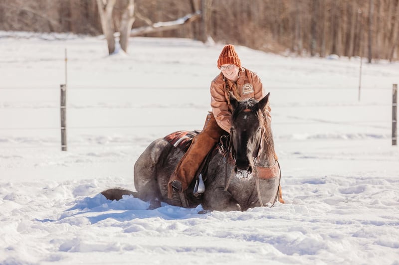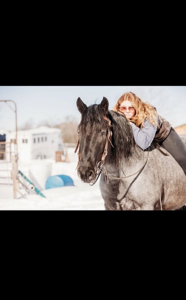 💎 𝐓𝐇𝐄 𝓓𝓲𝓪𝓶𝓸𝓷𝓭 𝐒𝐇𝐎𝐖𝐂𝐀𝐒𝐄 💎 Happening now thru MONDAY | FEBRUARY 23rd - Available EXCLUSIVELY on HorseBid's website! For more details and to register visit: www.Horsebid.com CONSIGNOR CONTACT: Hanson Horse Training 440-858-3074 LOCATION: Andover, OH BREED: Draft Cross REGISTERED: No REGISTERED NAME: Duke COLOR: Blue Roan HEIGHT: 16 AGE: 6 GENDER: Gelding Duke is a 6 year old blue roan draft cross gelding that I have had in my consignment program the last few months. Duke rides phenomenally, has smooth gaits, and is very willing. He has a loving personality that is to die for. He likes people, and doesn’t have a mean bone in his body. He is easy to bathe, flyspray, brush, saddle, bridle, and is just plain nice to be around. He also stands nicely for the farrier and vet, and is up to date on all vet and farrier work. Duke is barefoot, and has wonderful feet and legs. He has no blemishes or scars. Duke has no health issues or any special feed requirements of any kind. He’s an easy keeper, and is fine with any living arrangement (stalled, pasture living, or run in and out situations.) He has been exposed to many things, and is also started in harness. You can tie him anywhere and he will cause no trouble. Duke gets along with other horses well. He loads in the trailer easily, ties in the trailer, backs out or will turn around and walk out nicely. He has been hauled in slant load trailers and in stock trailers. I have never had him refuse to load, nor had any funny business in the trailer. I haul Duke to the arena and ride a few Duke a few days per week and he always acts like a gentleman. I trust people of all skill levels to lead and handle Duke. In a controlled environment with supervision I would be comfortable with beginners riding him also, he would be absolutely phenomenal for a lesson program; western or English. Duke has had been hopped over a few small jumps also! Sidepassing to the mounting block is another one of Duke’s handy skills! Another fun trick that he knows is lying down. He will lie down for you to mount and dismount, and will also sit up on command! He is truly a special horse that would be very hard to duplicate. If you’re looking for an arena horse, trail horse lesson horse for people to learn on, or just an amazing and beautiful companion, Duke offers that. Dukes current owner expected him to be her forever horse. Life has thrown her a curveball, and she is now having some serious health issues. She is battling a bad cancer fight, and regrettably has to offer Duke for sale to his new lucky owner. It breaks her heart to have to sell him but she has no choice. If her health wouldn’t be failing her, this horse would never be offered for sale. Don’t miss your opportunity to own a once in a lifetime horse. I come across very few special horses and Duke certainly makes it on that list. Please call or text 440-858-3074 for any info or to come out and try Duke in person. Whoever buys Duke will not be disappointed.