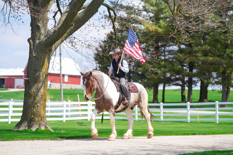 ONLINE AUCTION Place your bids at www.PlatinumEquineAuction.com Starting Bid $3500 Auction ends May 18th, 2025 Need a new saddle? Check out White Rock Saddles on our website or Facebook! Spirit is a 5 yr old, stunning red roan tobiano, draft cross gelding. He stands a magnificent 16.1 hands tall and weighs 1400 lbs. Spirit is an all around horse, he has done Christmas rides in multiple towns. He will ride out in a group or be great by himself. He crosses water, logs, down the busy highway, good in traffic, trails, been out after dark. Spirit is well trained to ride English or western. He also drives single or double. If you are looking for a horse that is big enough for the adults, and quiet enough for the children, definitely check him out. He has excellent ground manners, easy to catch, groom, bathe, stands good for the farrier, hauls and stalls great! Spirit can be turned out with other horses or stalled by himself. We have truly enjoyed every minute of Spirit and are excited to find him the perfect home where he can continue to shine. Horses like him don’t come around every day! Contact Rudy at R & R Regal Equine: 319-334-8649 to schedule a time to meet him, FaceTime , or just chat more about this once in a a lifetime horse! Located in Independence IA. ONLINE AUCTION Place your bids at www.PlatinumEquineAuction.com Starting Bid $3500 Auction ends May 18th, 2025 Need a new saddle? Check out White Rock Saddles on our website or Facebook!