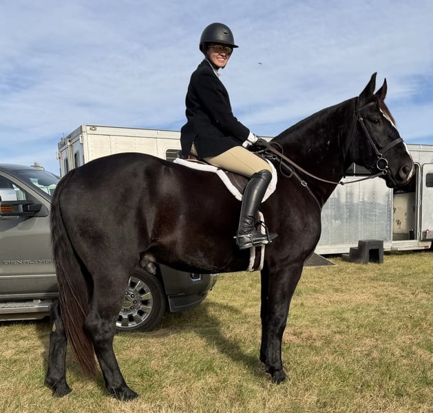 Groß, dunkel und gutaussehend – Truman ist ein mittelgroßer, korrekt gebauter und beeindruckender Wallach mit tadellosem Benehmen am Boden. Er kommt auf Ruf, steht ruhig in Kreuzgalgen, lässt sich problemlos anhängen, beim Hufschmied ruhig stehen und lädt sogar selbstständig ein – er ist also ebenso leicht im Umgang am Boden wie unter dem Sattel. Ein schöner Bewegungsablauf mit hervorragender Grundausbildung im Dressurviereck. Er wurde langsam und sorgfältig im Gelände eingesetzt, zunächst in der 2. und 3. Abteilung für zwei Saisons, und ist bereit, willig und in der Lage, in die 1. Abteilung aufzusteigen. Er ist unerschrocken und geht jedem Sprung mit Selbstvertrauen an. Truman ist unkompliziert und sicher für alle Reiterlevels. Er ist ein vielseitiges Allround-Pferd – perfekt für jemanden, der einen talentierten Hunter sucht, eine zuverlässige Unterrichts- oder Showpartnerin oder ein selbstsicheres Freizeitpferd für die Ausritte. Verpassen Sie nicht die Chance, diesen außergewöhnlichen Wallach zu Ihrem Eigen zu machen! Denken Sie daran: Sie verdienen das Beste!